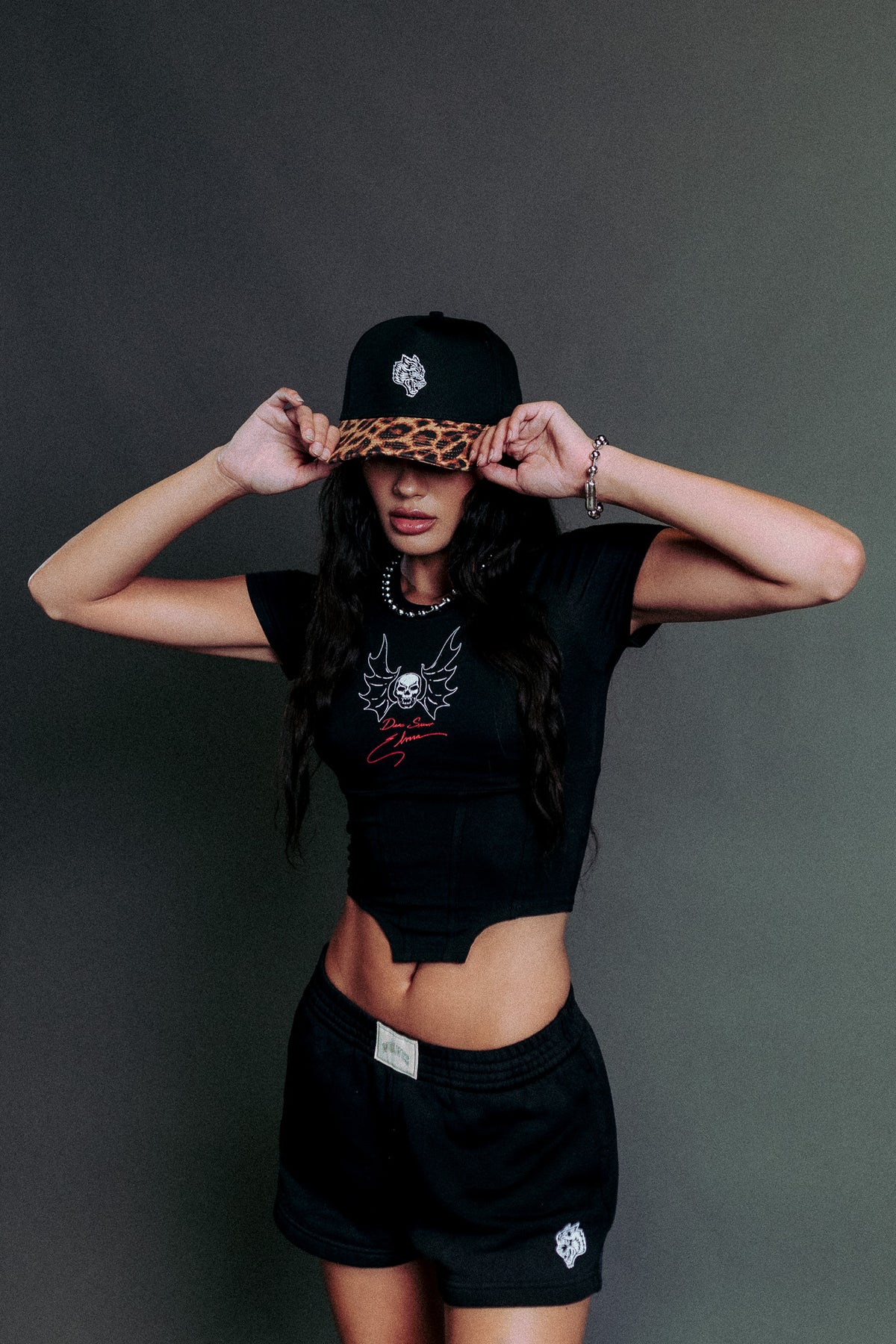 Wolf Head 5 Panel Hat in Black/Clay Leopard