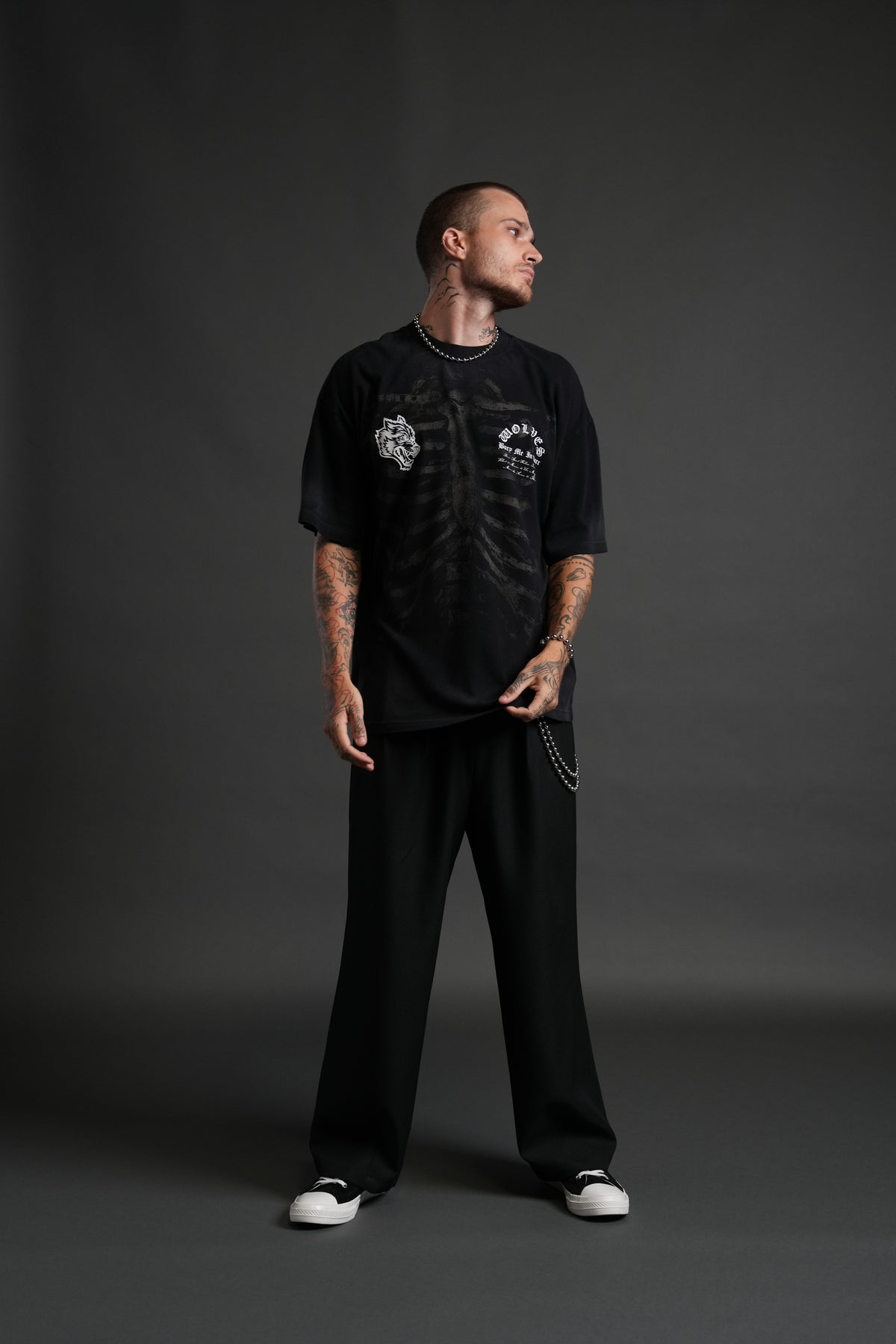 Bones "Premium" Oversized Tee in Black Drift Wash