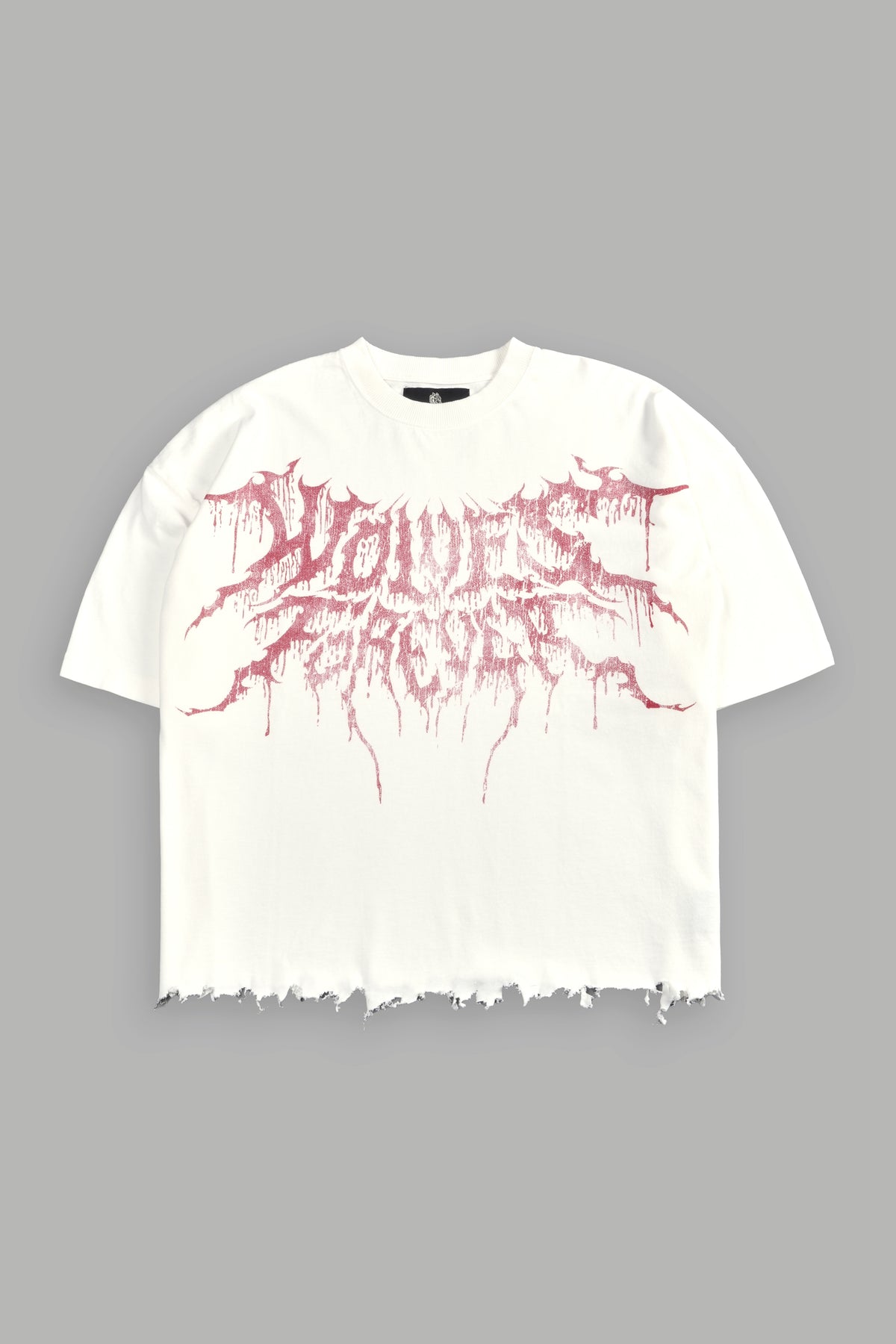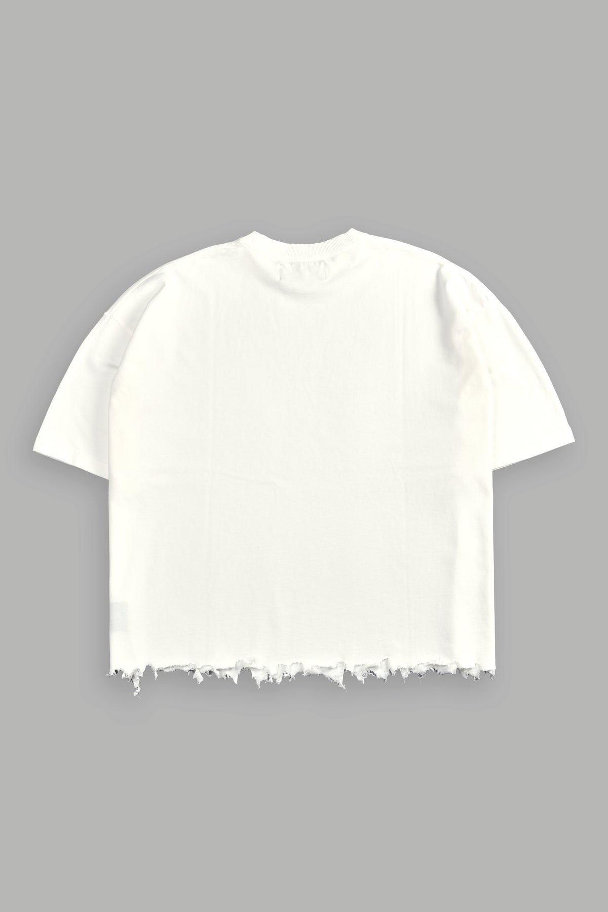 Drip Hesh Destroyed Grunge "Box Cut" Tee in Cream