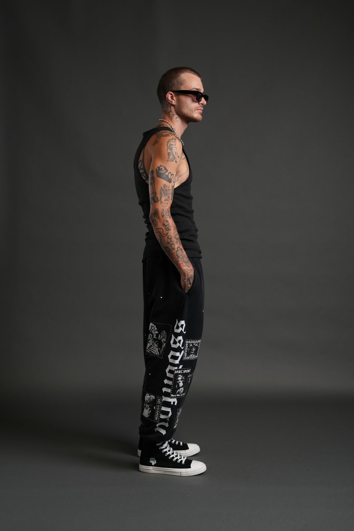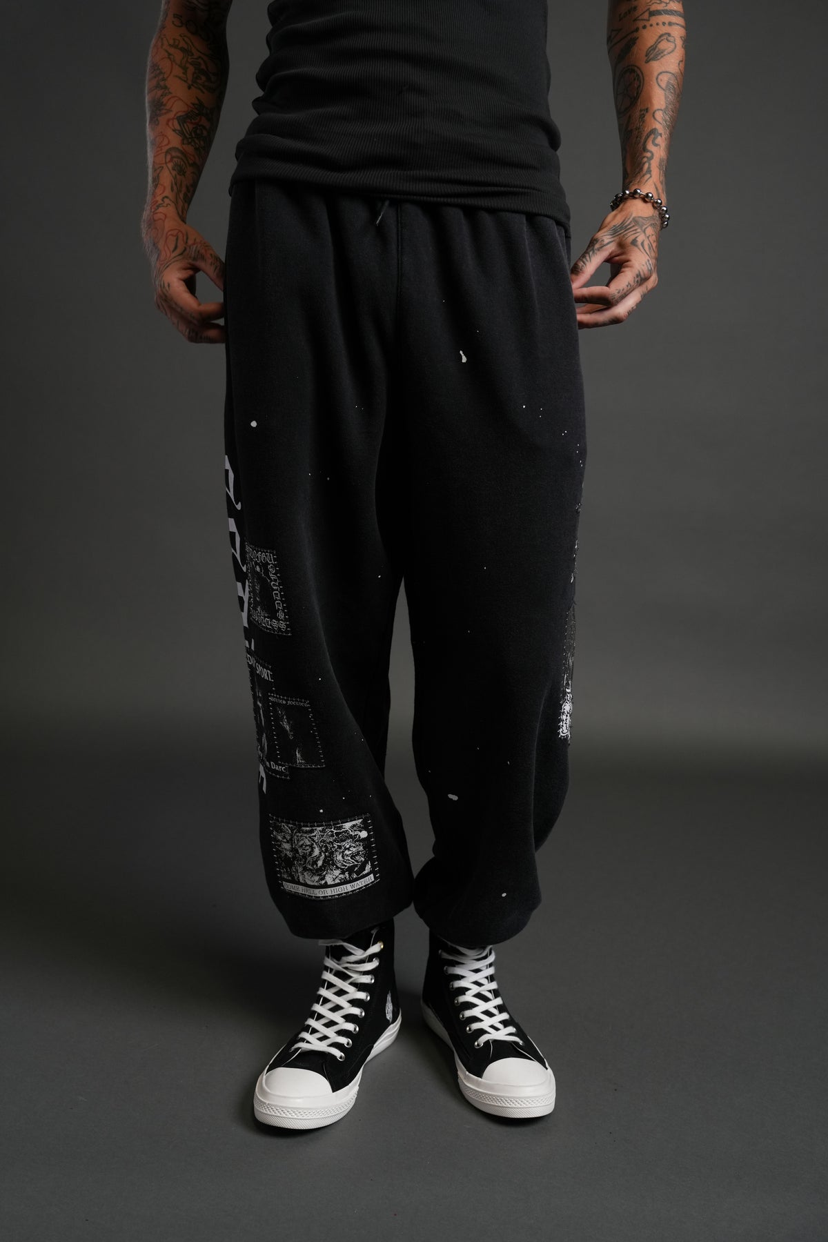 Stitched In Unisex Lounger Sweat Pants in Black Vandal Wash