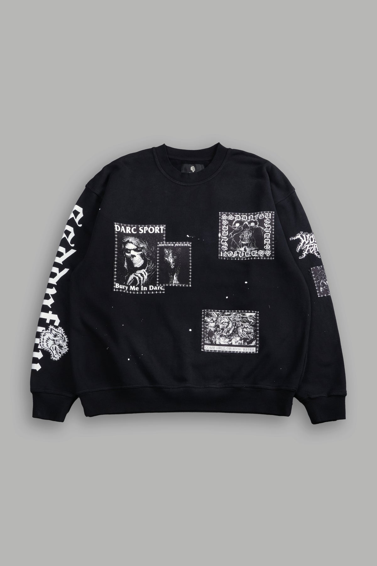 Stitched In London Unisex Crewneck in Black Vandal Wash