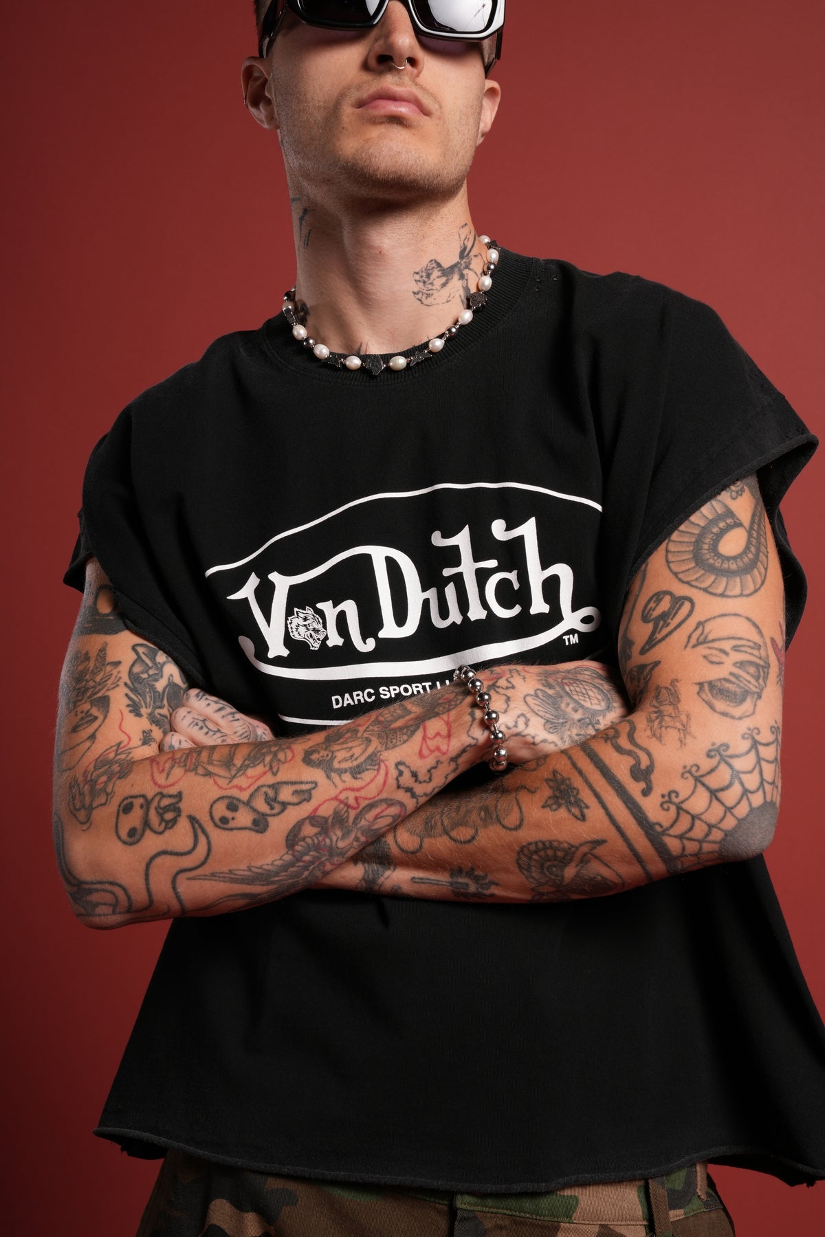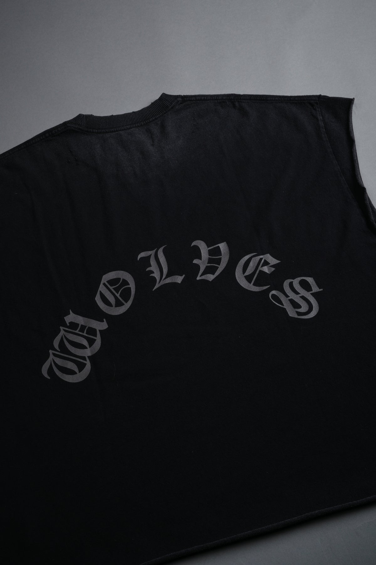 DSVD Legacy Distressed Grunge Cut-Off Mid-Length Raw Hem Tee in Black