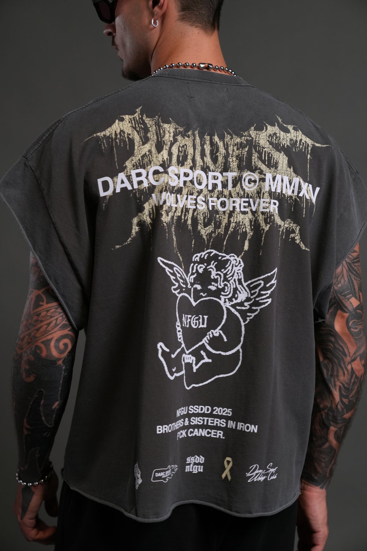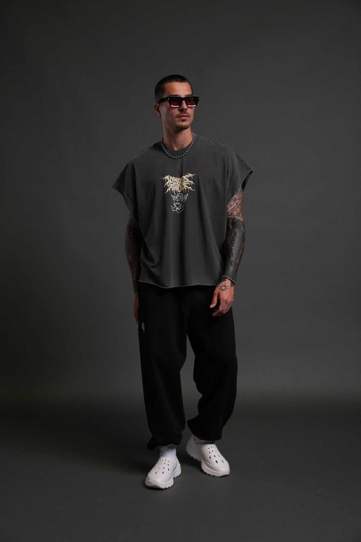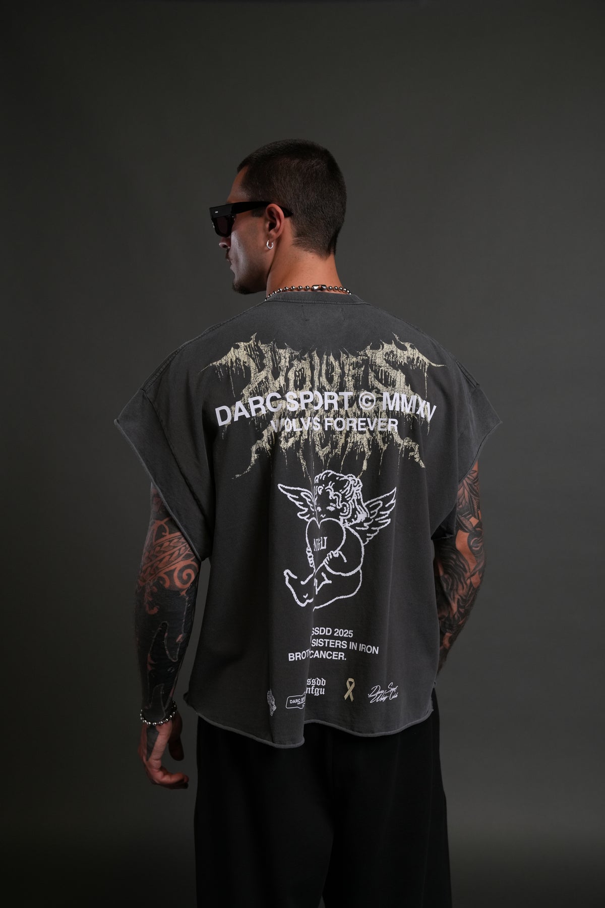 Cherub Core Grunge Cut-Off Tee in Wolf Gray