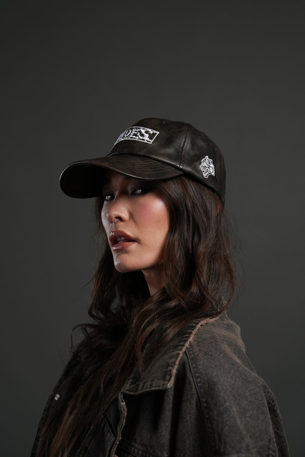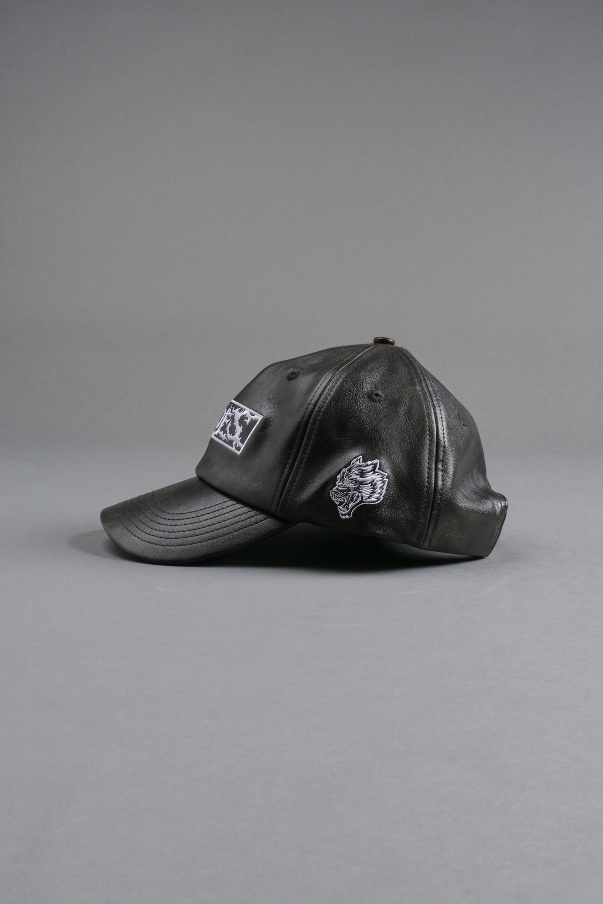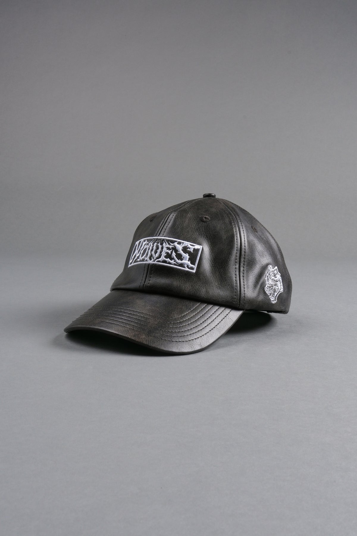 Midnight Wolves Faux Leather Dad Hat in Black