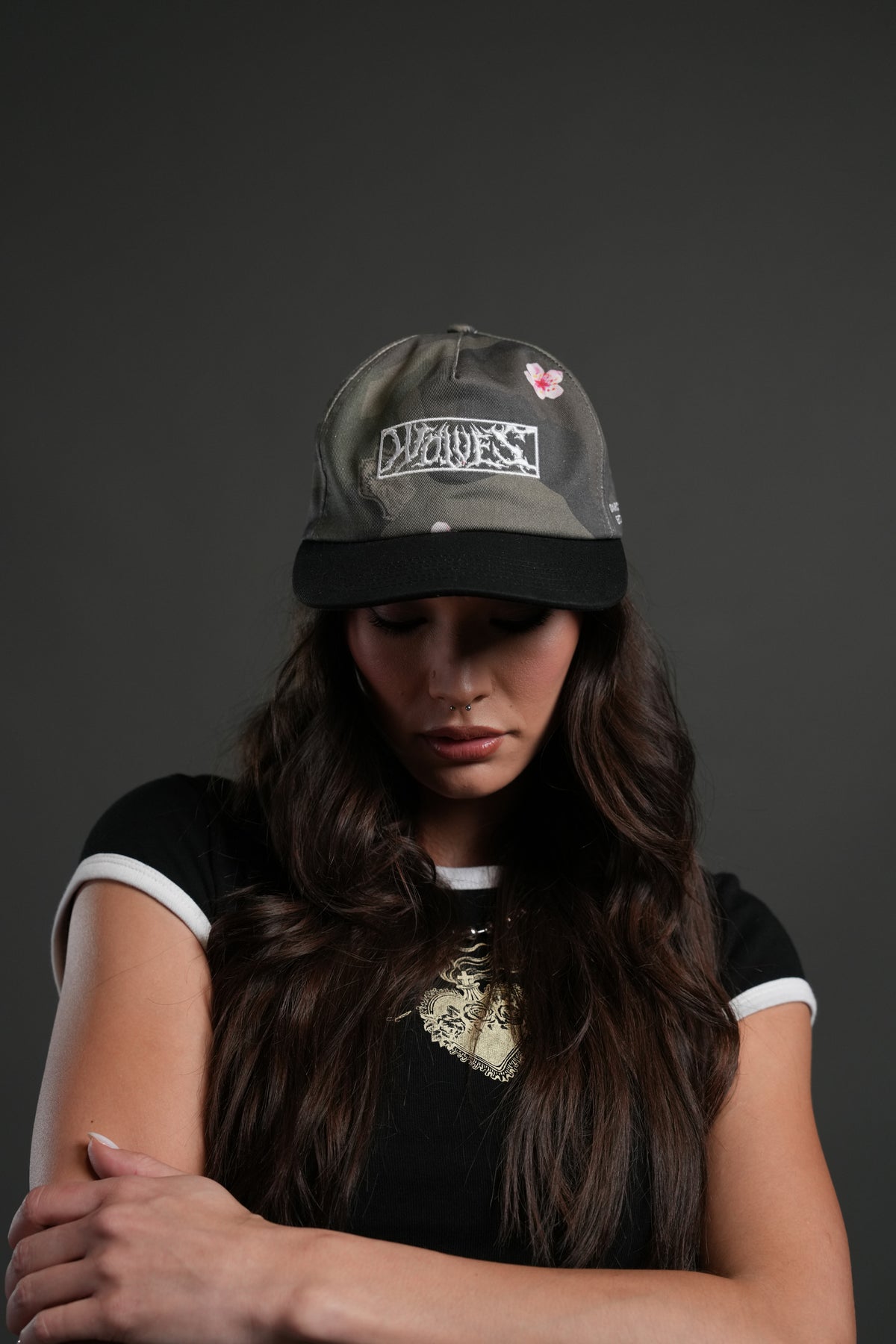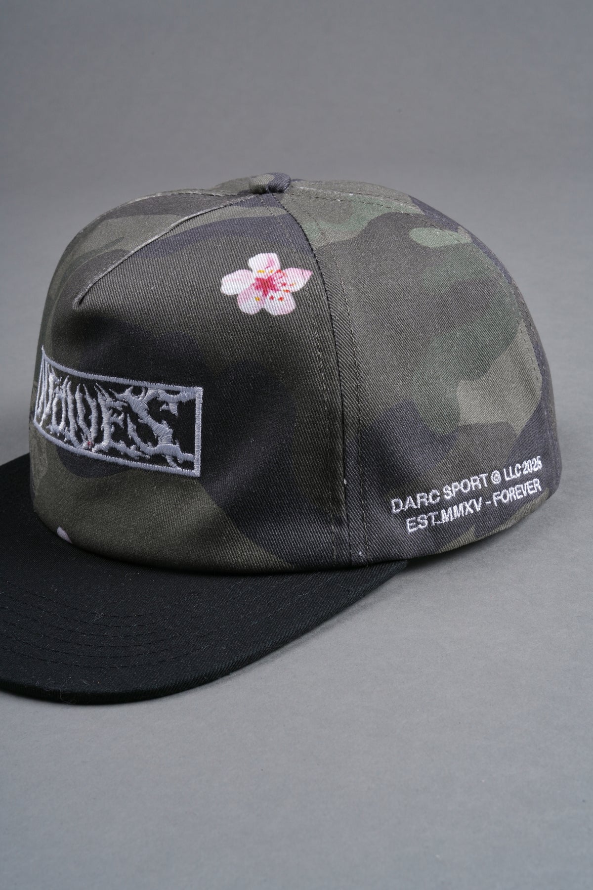 Midnight Wolves Vintage 5 Panel Hat in Vintage Blossom Woodland Camo