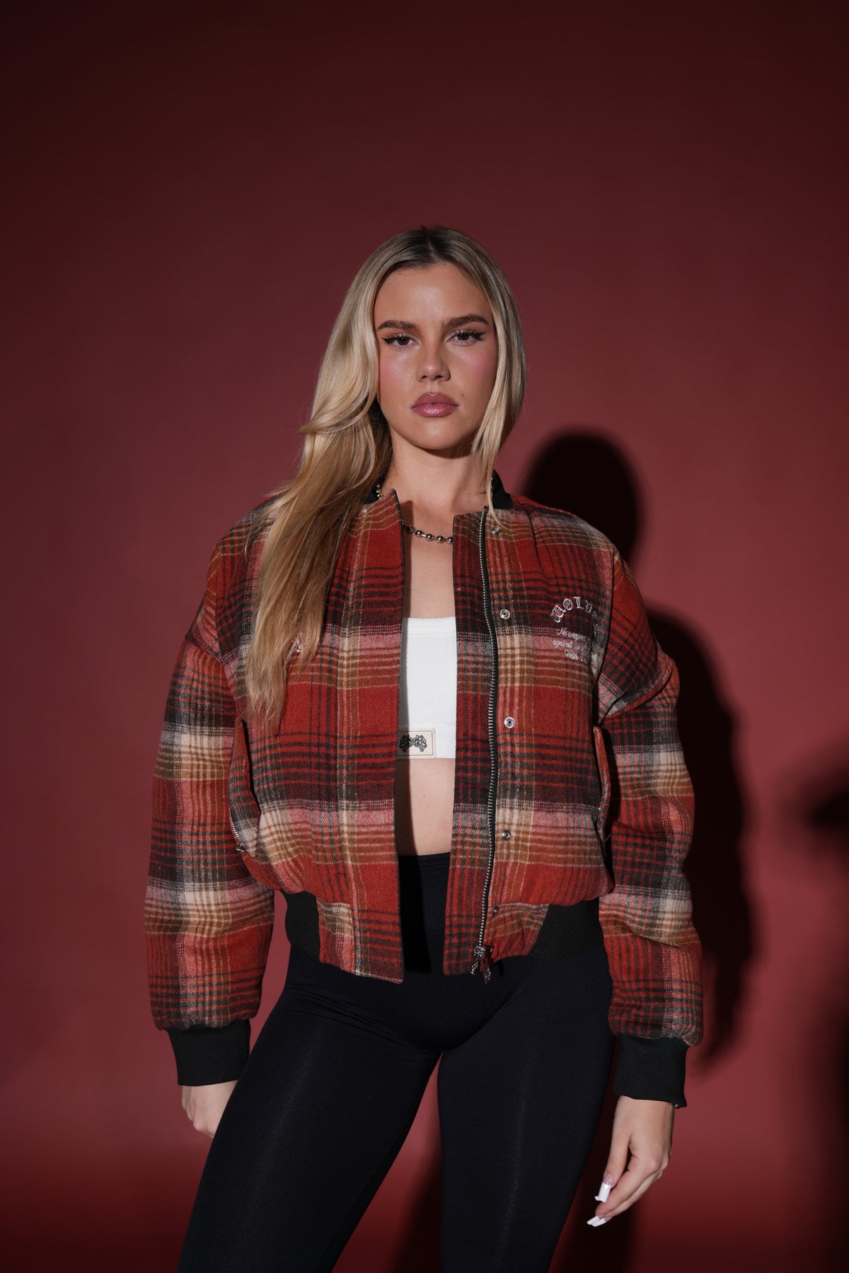 She Chopper Vicious Bomber Jacket in Brimstone Plaid