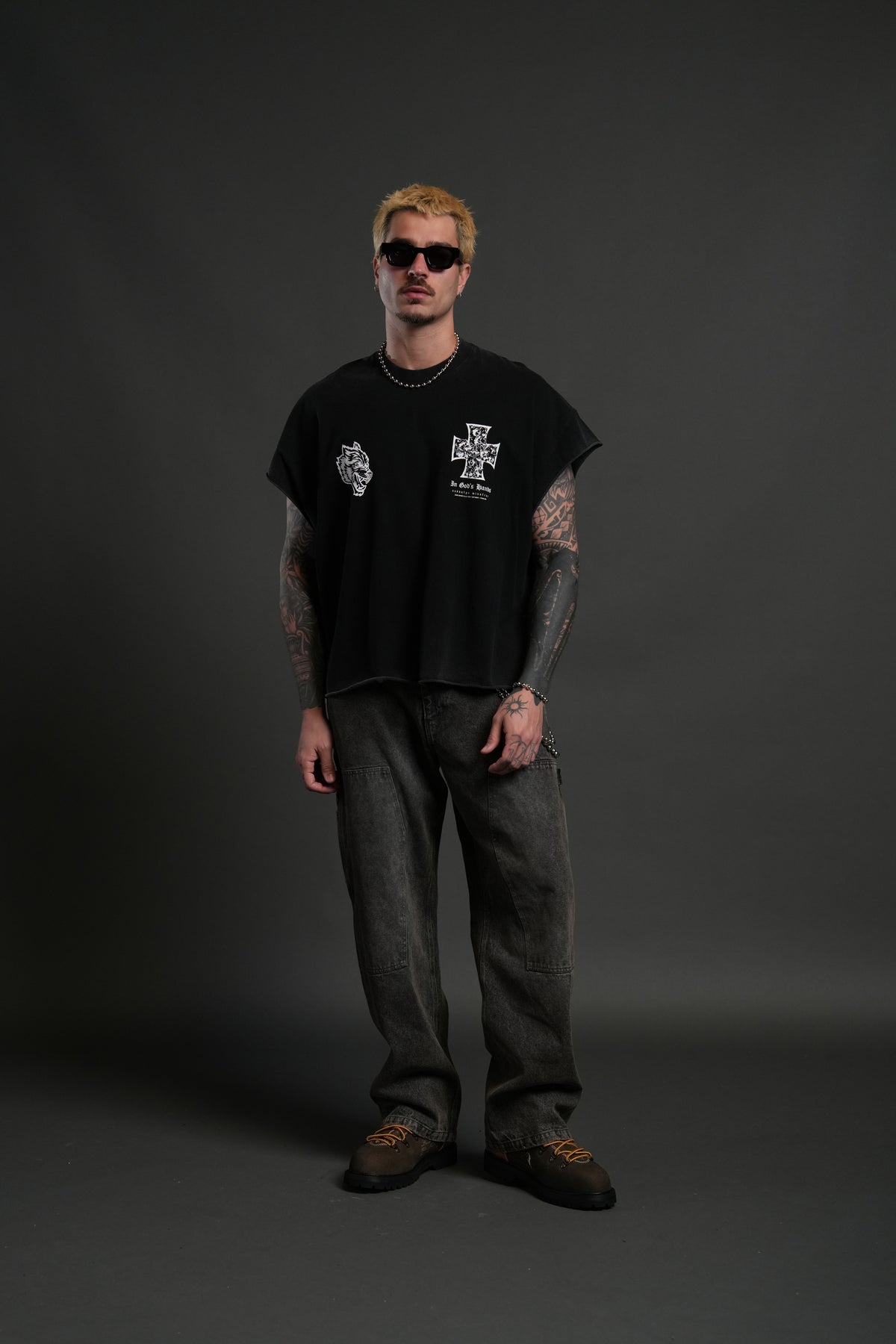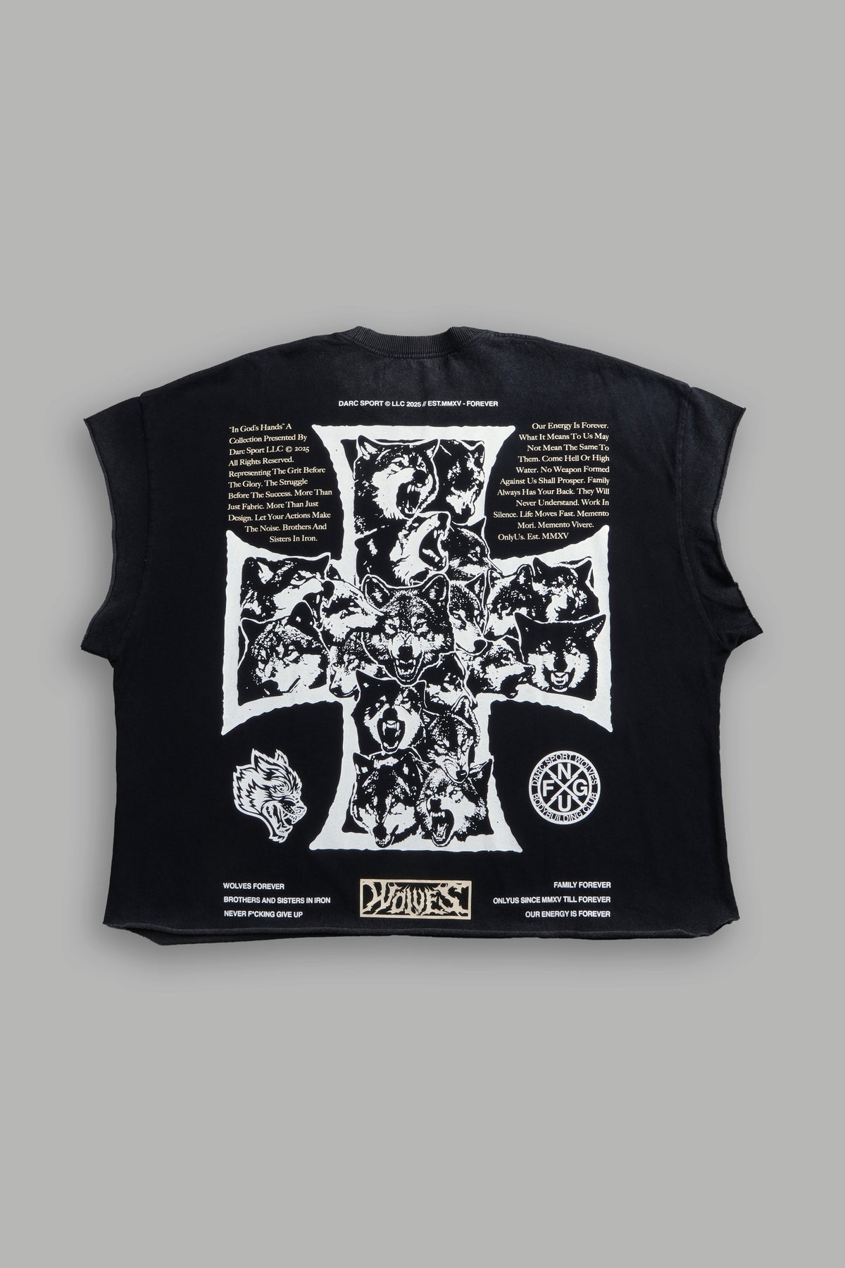 Iron Wolf Pack Grunge Cut-Off Tee in Black