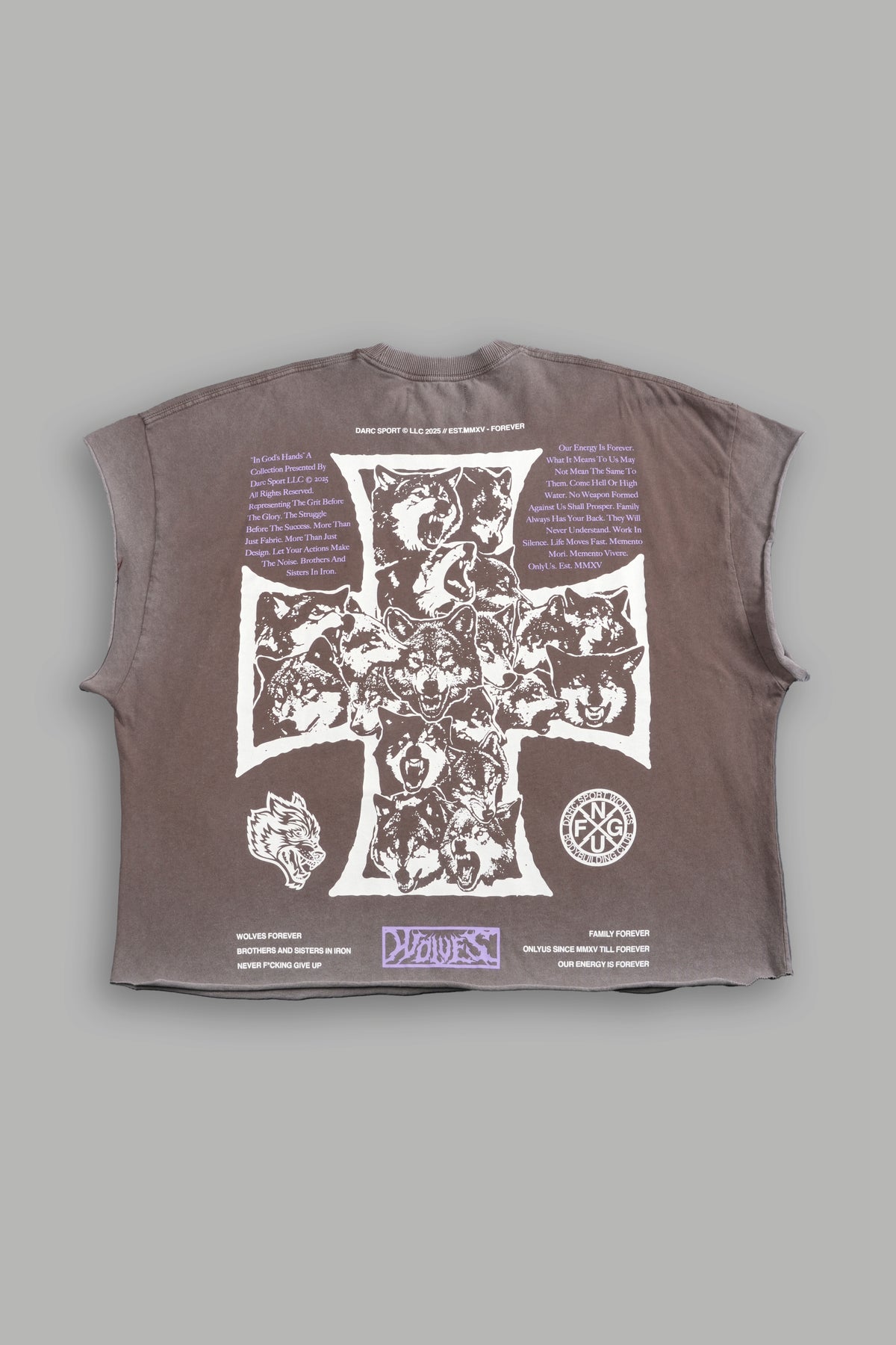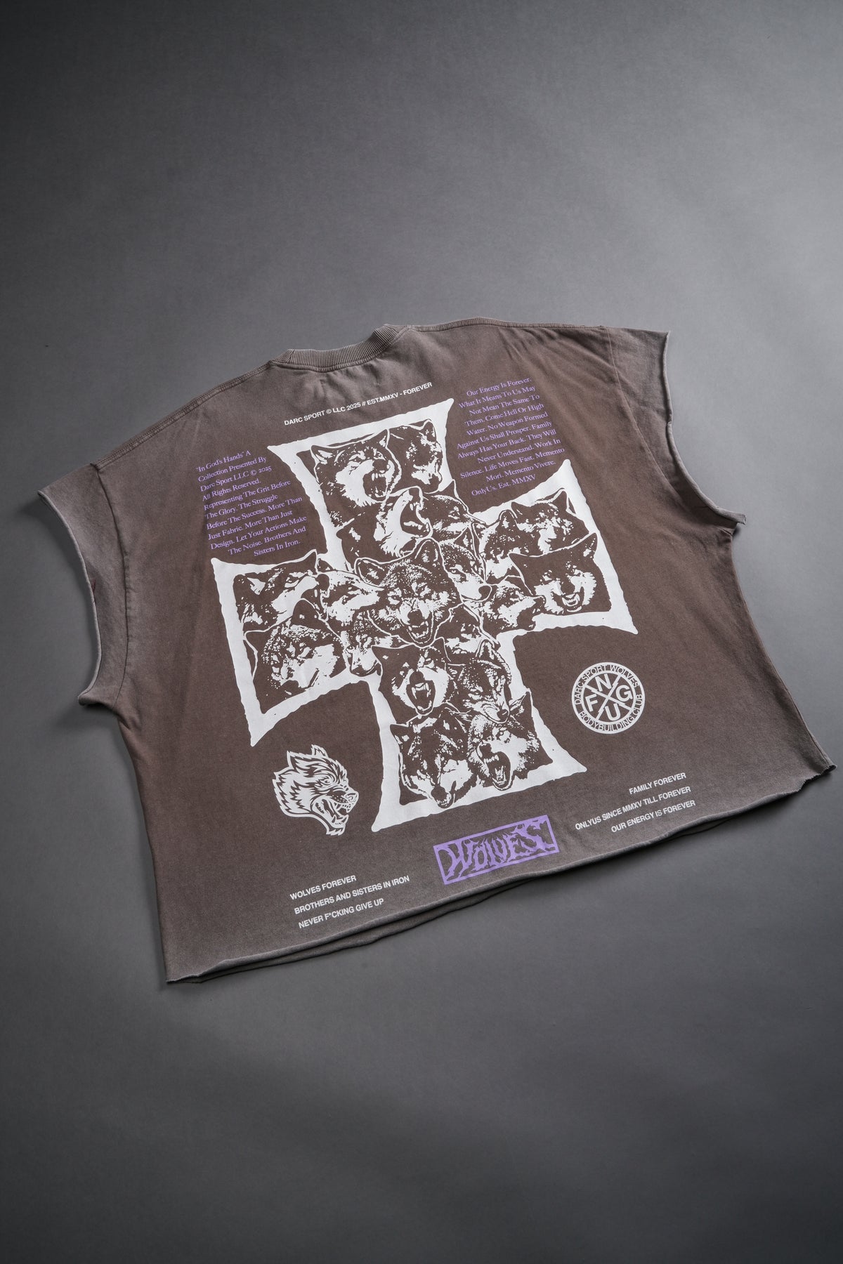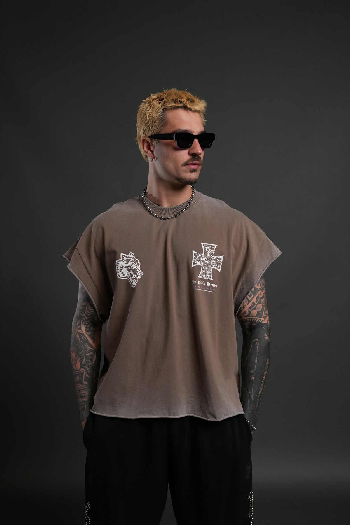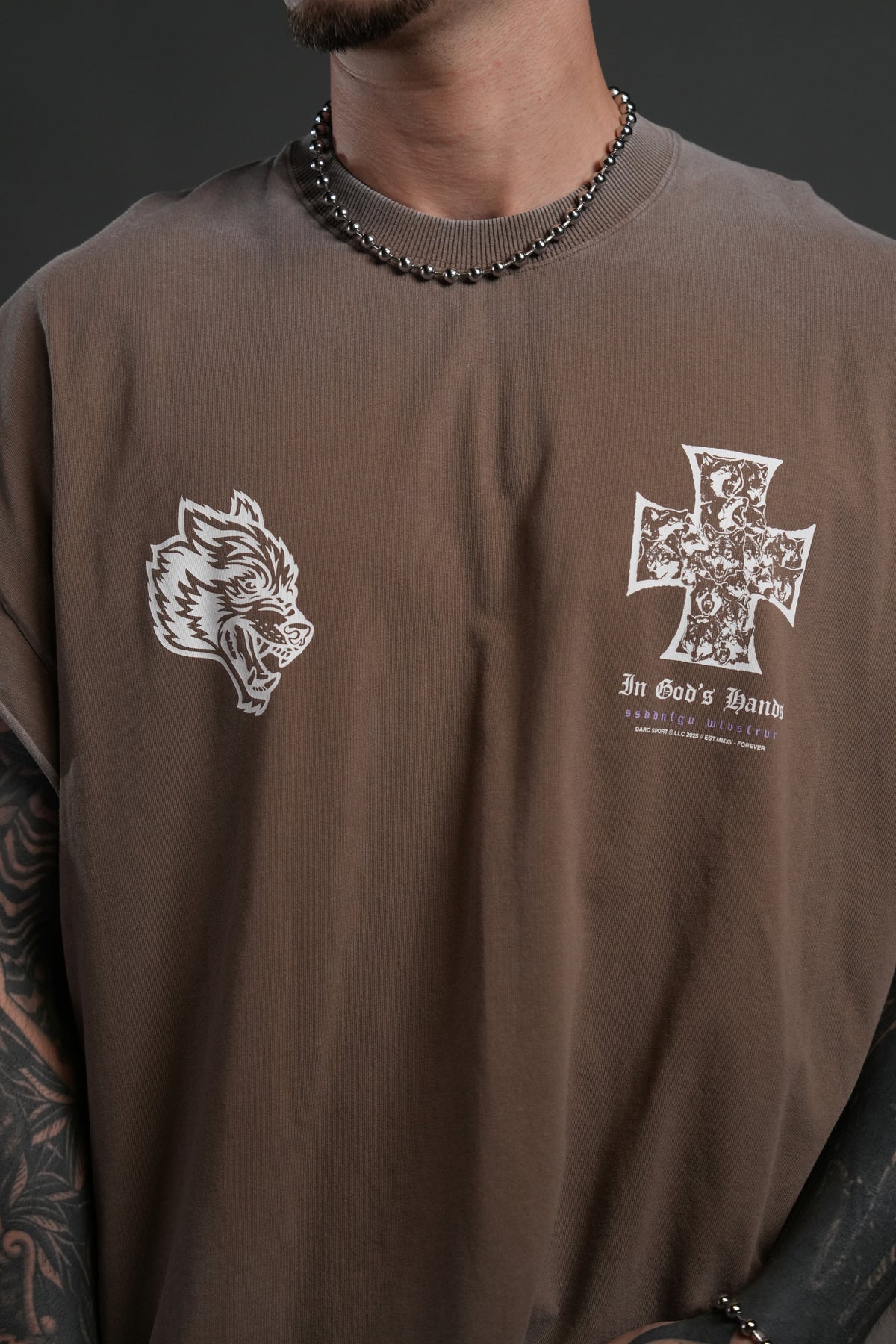 Iron Wolf Pack Grunge Cut-Off Tee in Mojave Brown