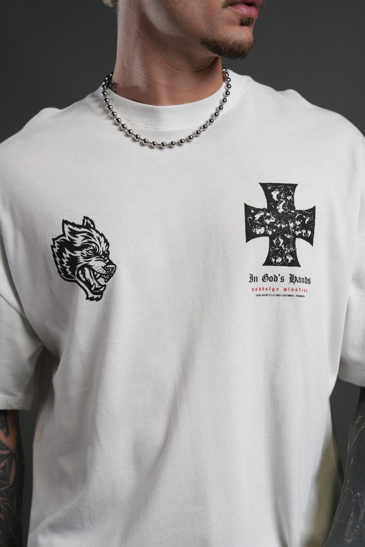 Iron Wolf Pack "Premium" Oversized Tee in Cream