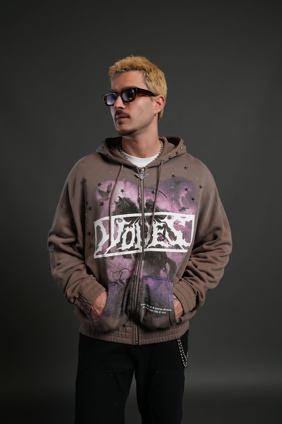 Midnight Horseman "Chambers" Zip Hoodie in Mojave Brown Drift Wash
