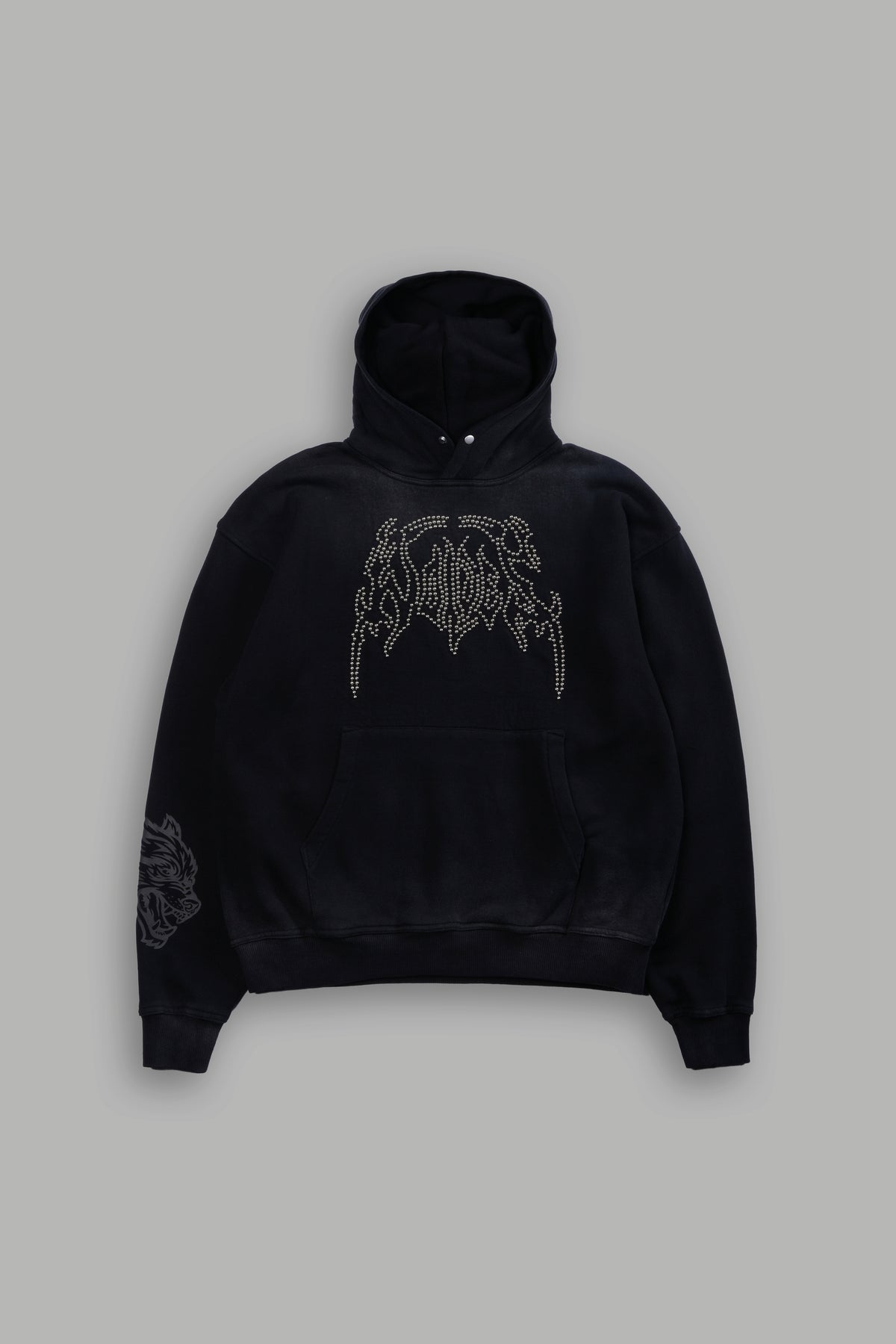 Studded Respect Unisex "Pierce" Hoodie in Black Drift Wash