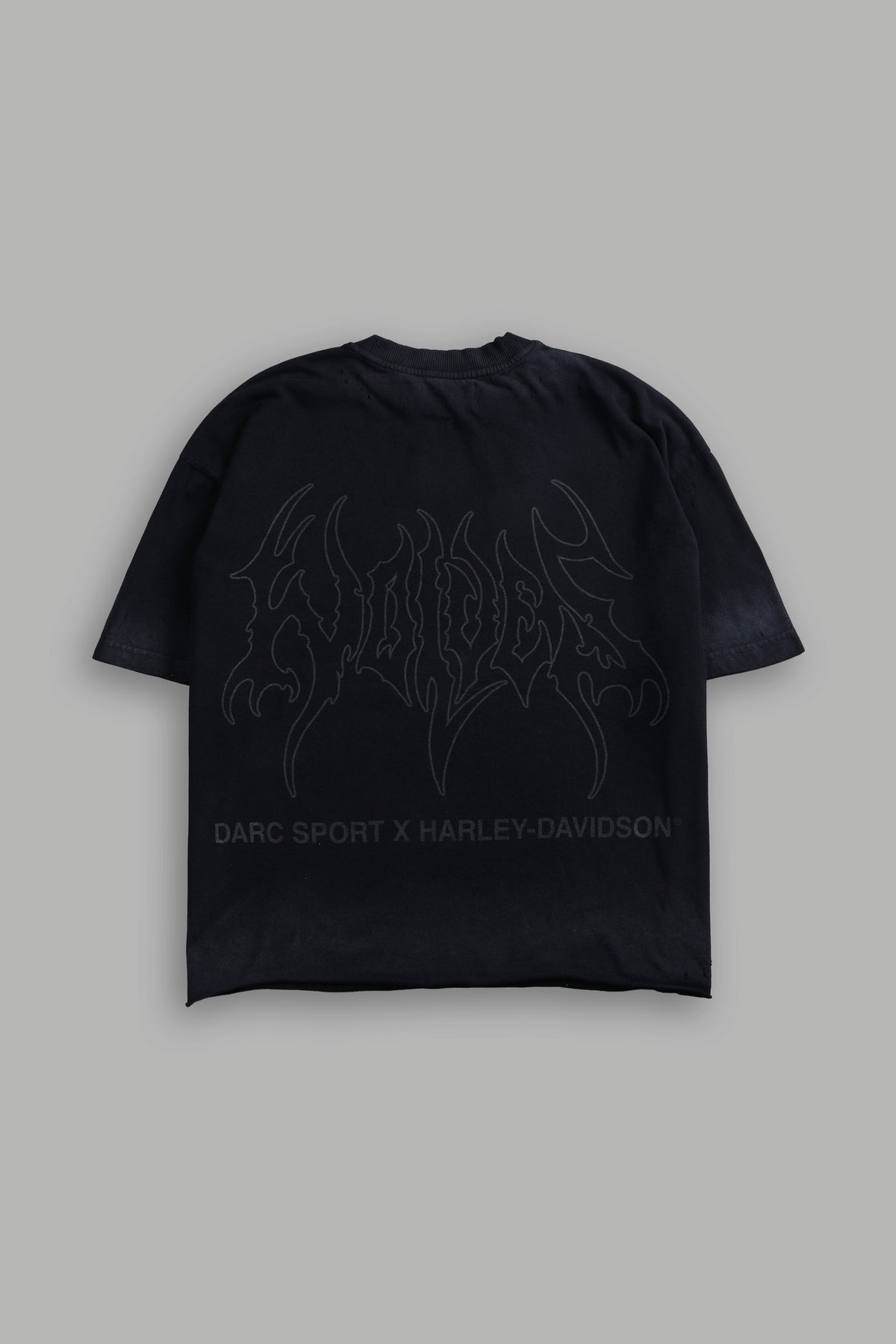 Darc Eagle Distressed Grunge Mid-Length Raw Hem Tee in Black Drift Wash