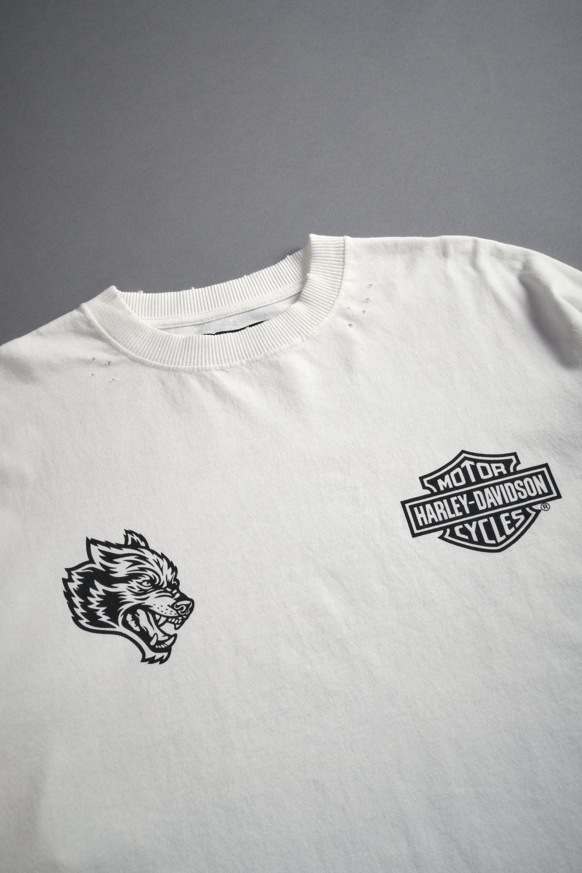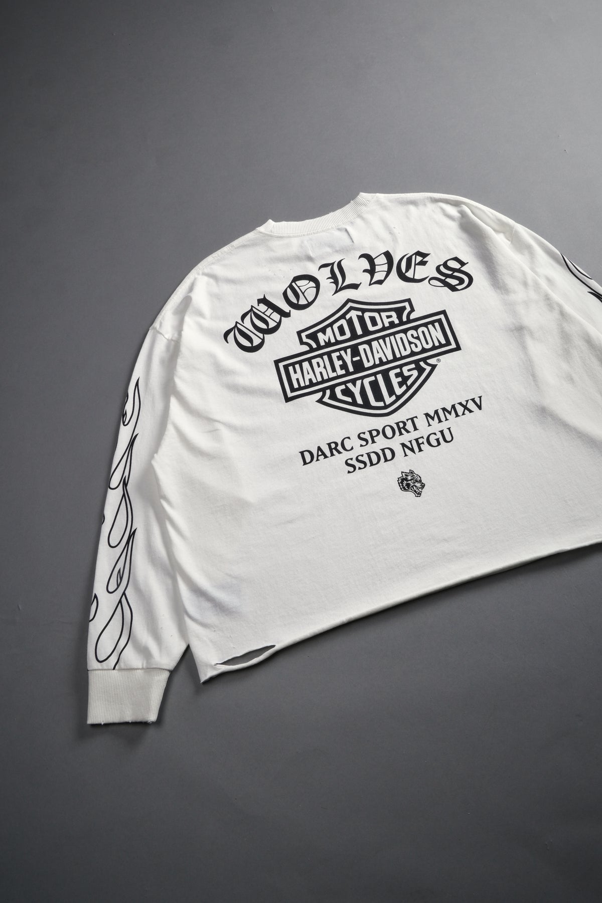 Harley-Davidson Wolves Distressed Grunge "Box Cut" L/S Tee in Cream