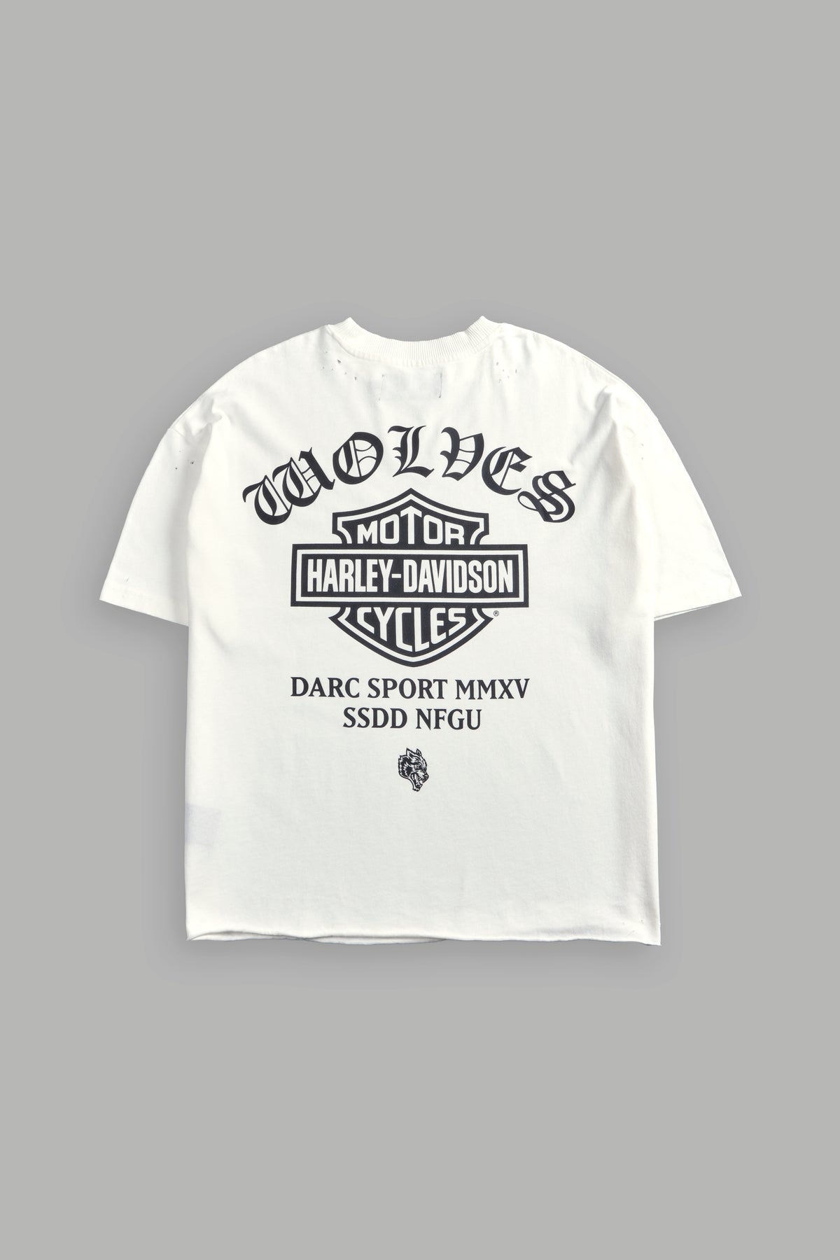 Harley-Davidson Wolves Distressed Grunge Mid-Length Raw Hem Tee in Cre