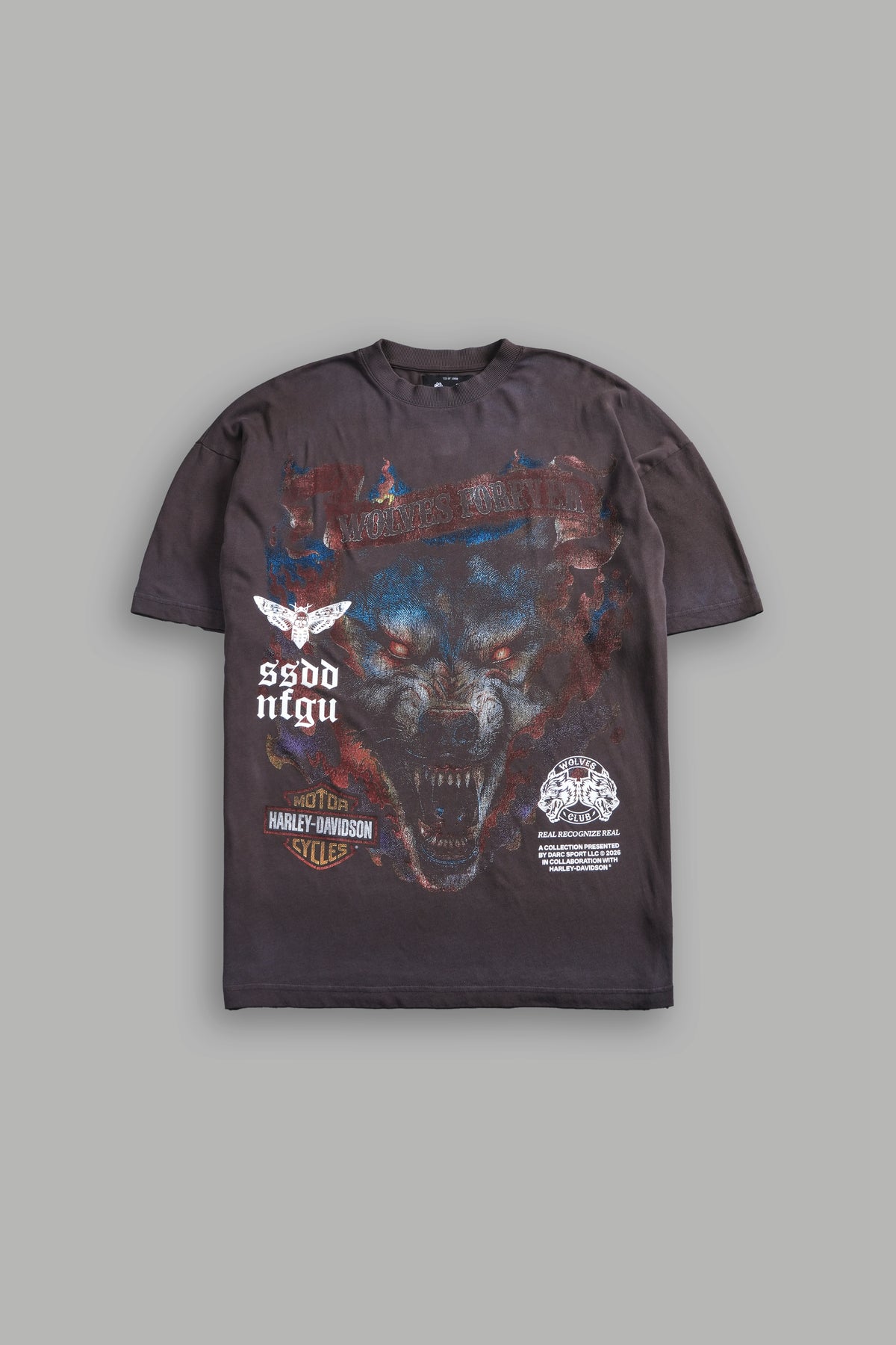 Inferno Wolf "Premium" Oversized Tee in Darc Brown Drift Wash