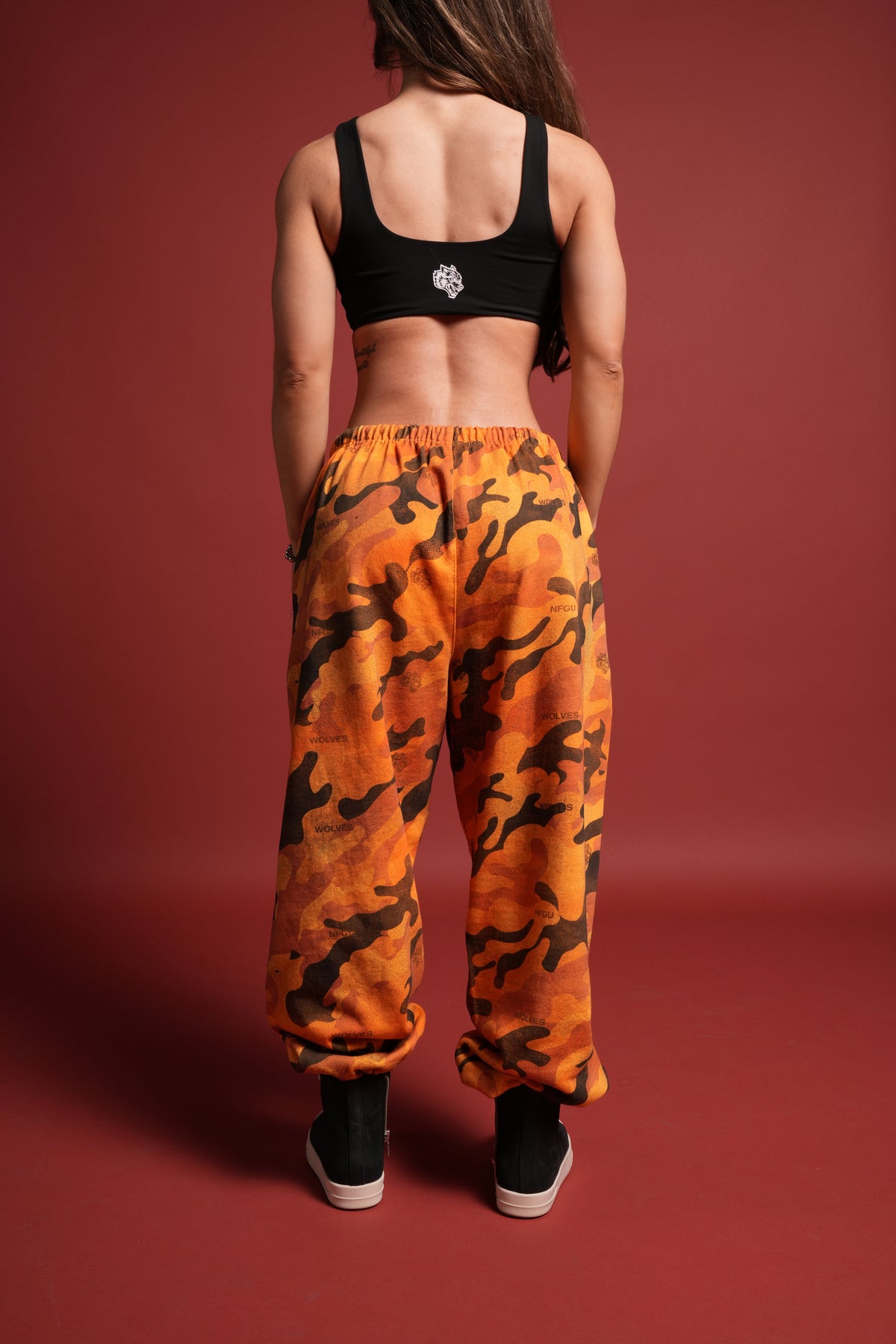 Dual Wolf Unisex Lounger Sweat Pants in DSVD Orange Camo
