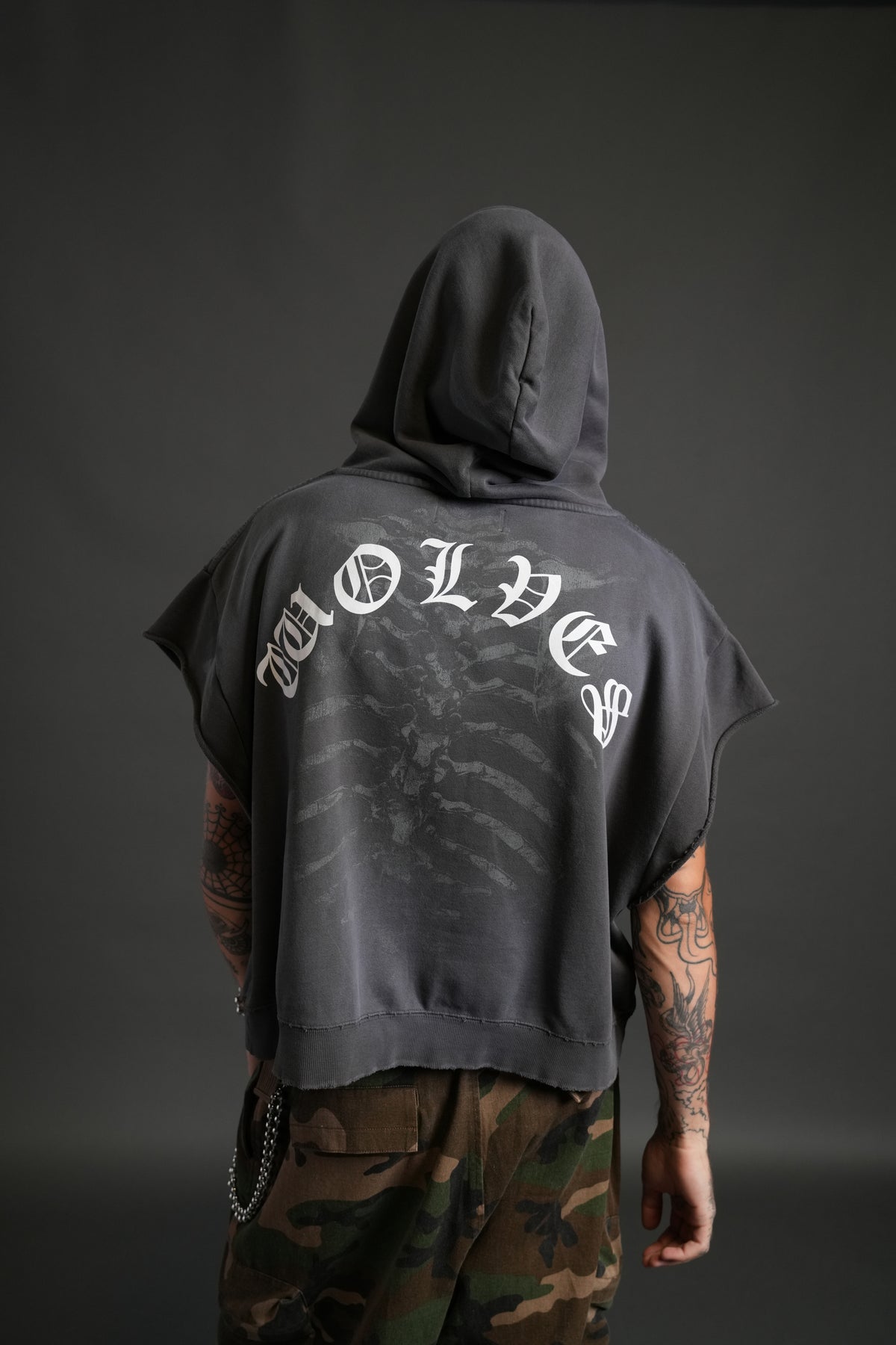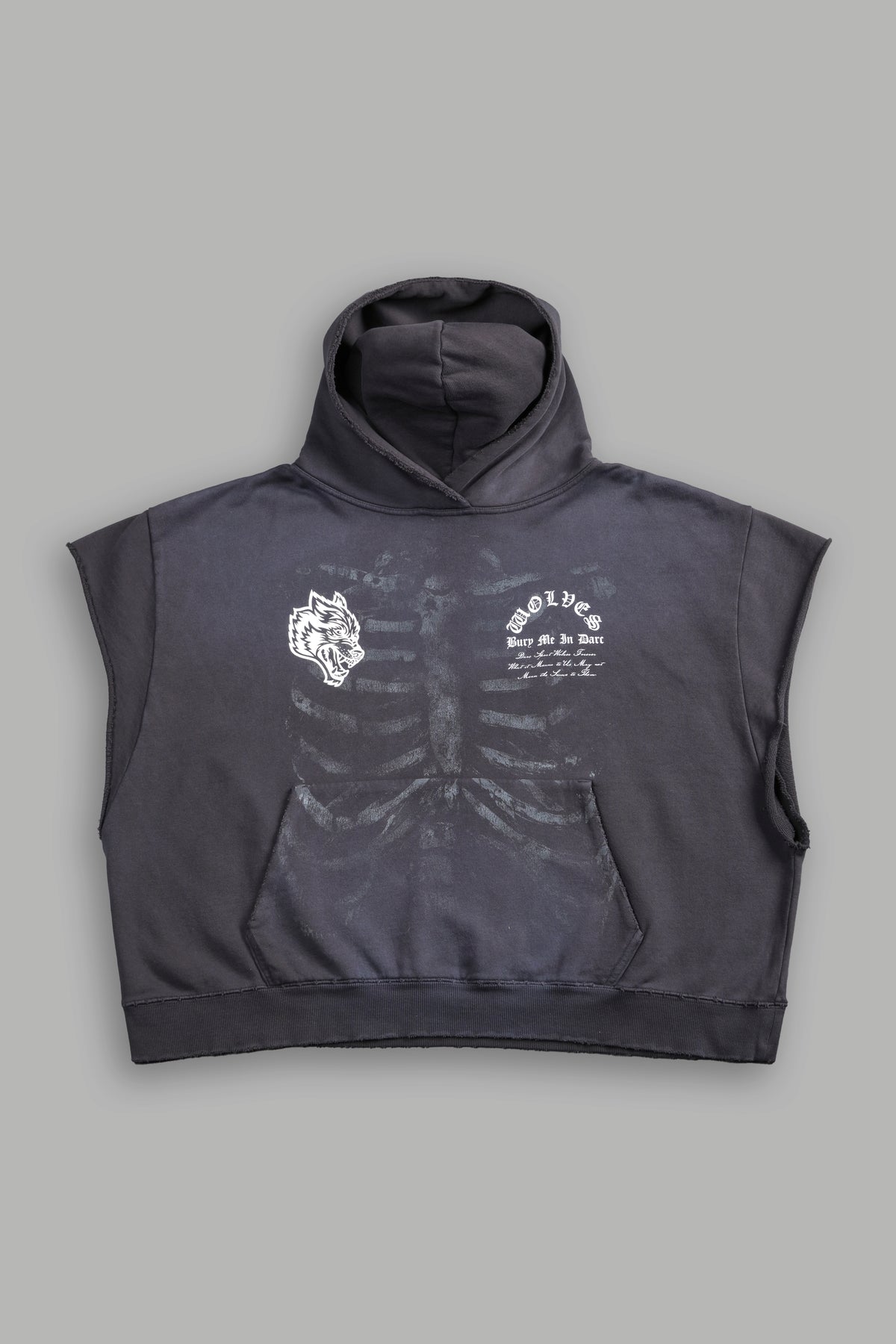 Bones Destroyed Grunge Gage Cap Sleeve Hoodie in Wolf Gray Drift Wash