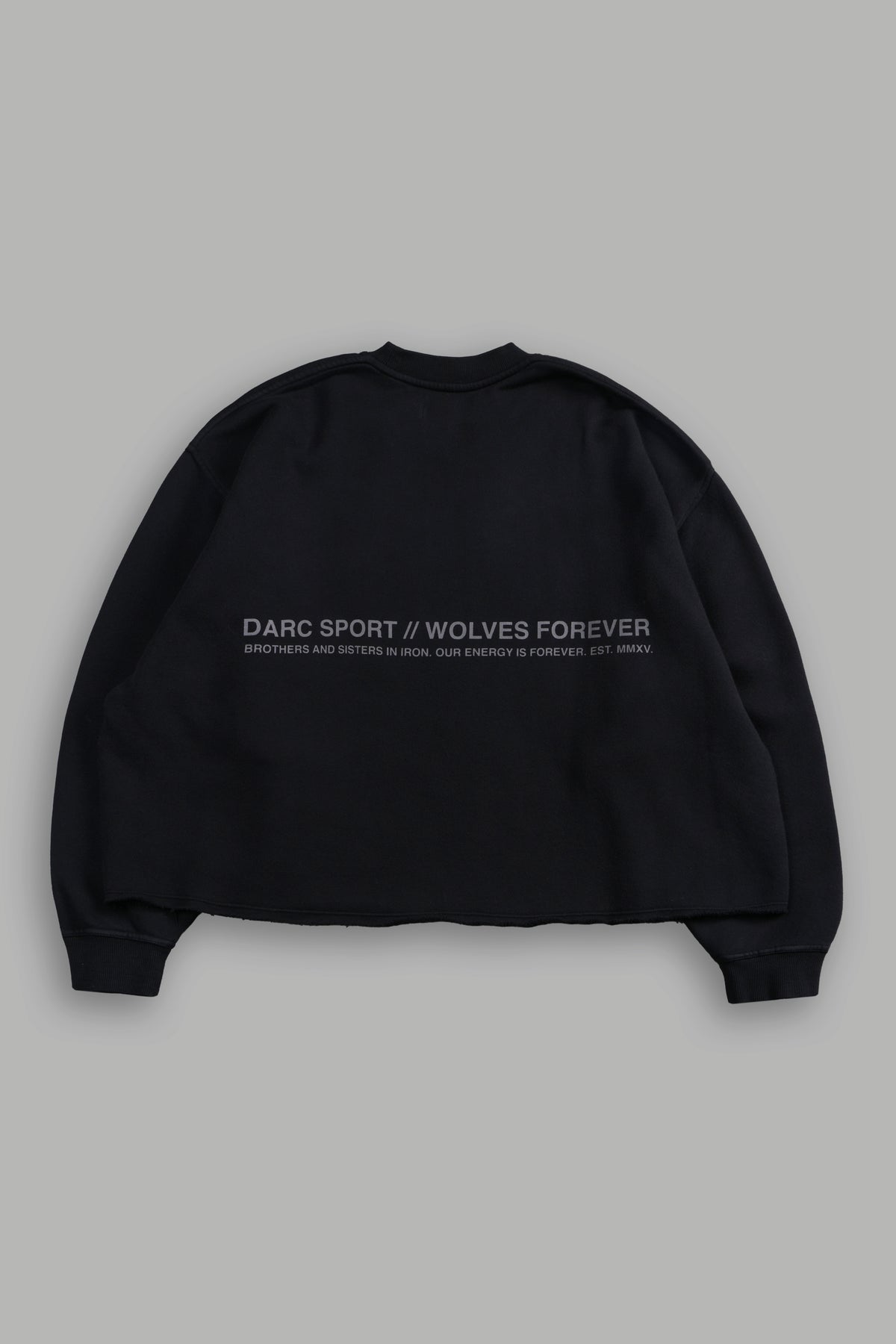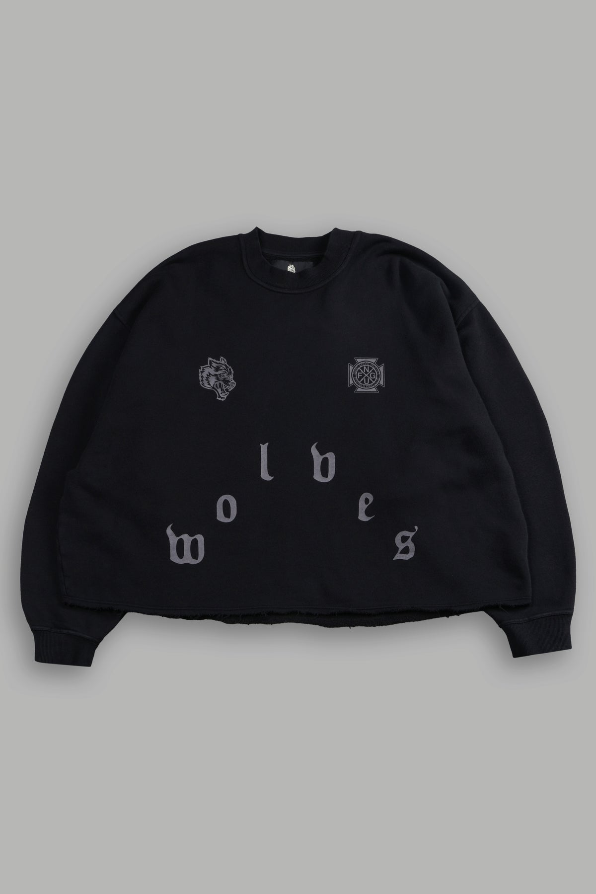 Pyramid Wolves Raw Hem "Box Cut" Crewneck in Black