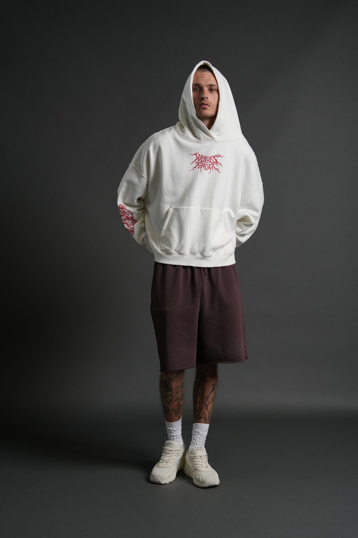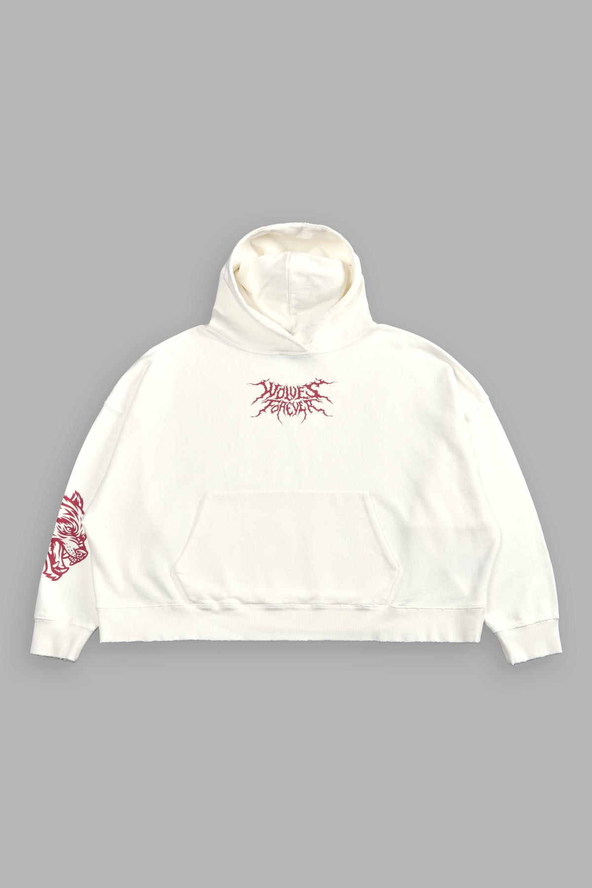 Slasher Destroyed Grunge "Gage Box Cut" Hoodie in Cream