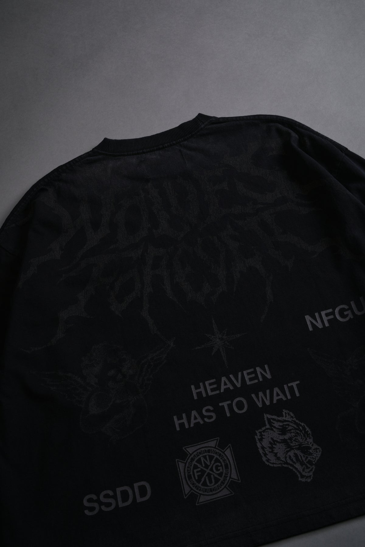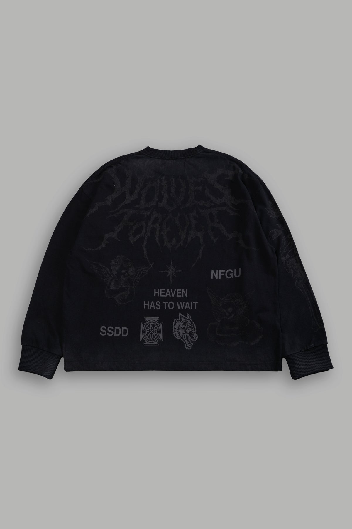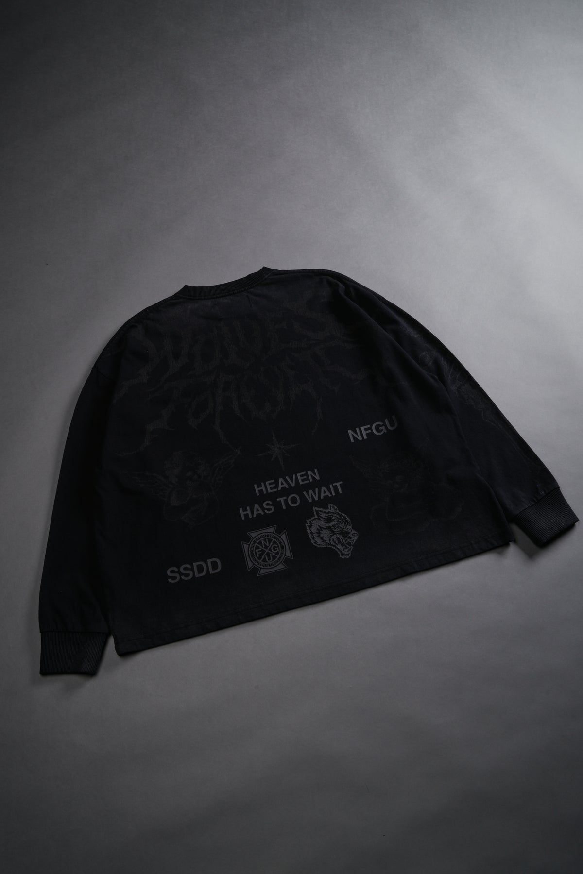 Sacred Flash Grunge "Box Cut" L/S Tee in Black Drift Wash