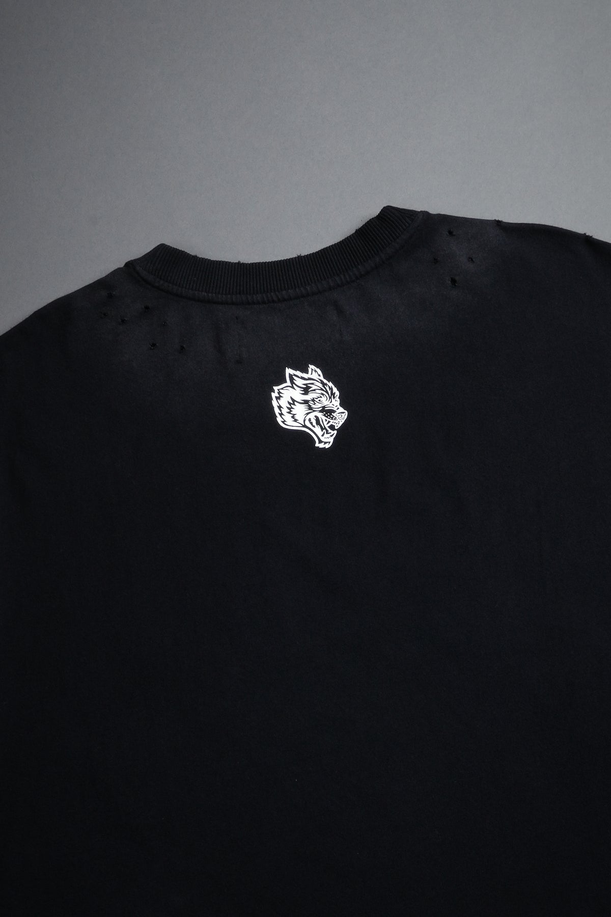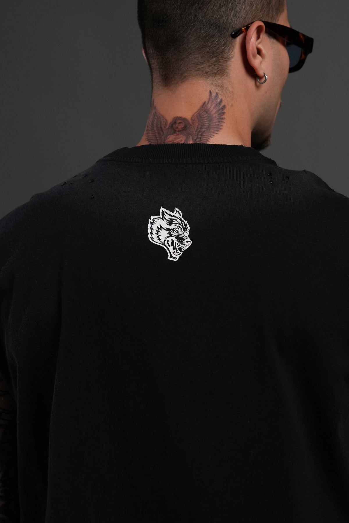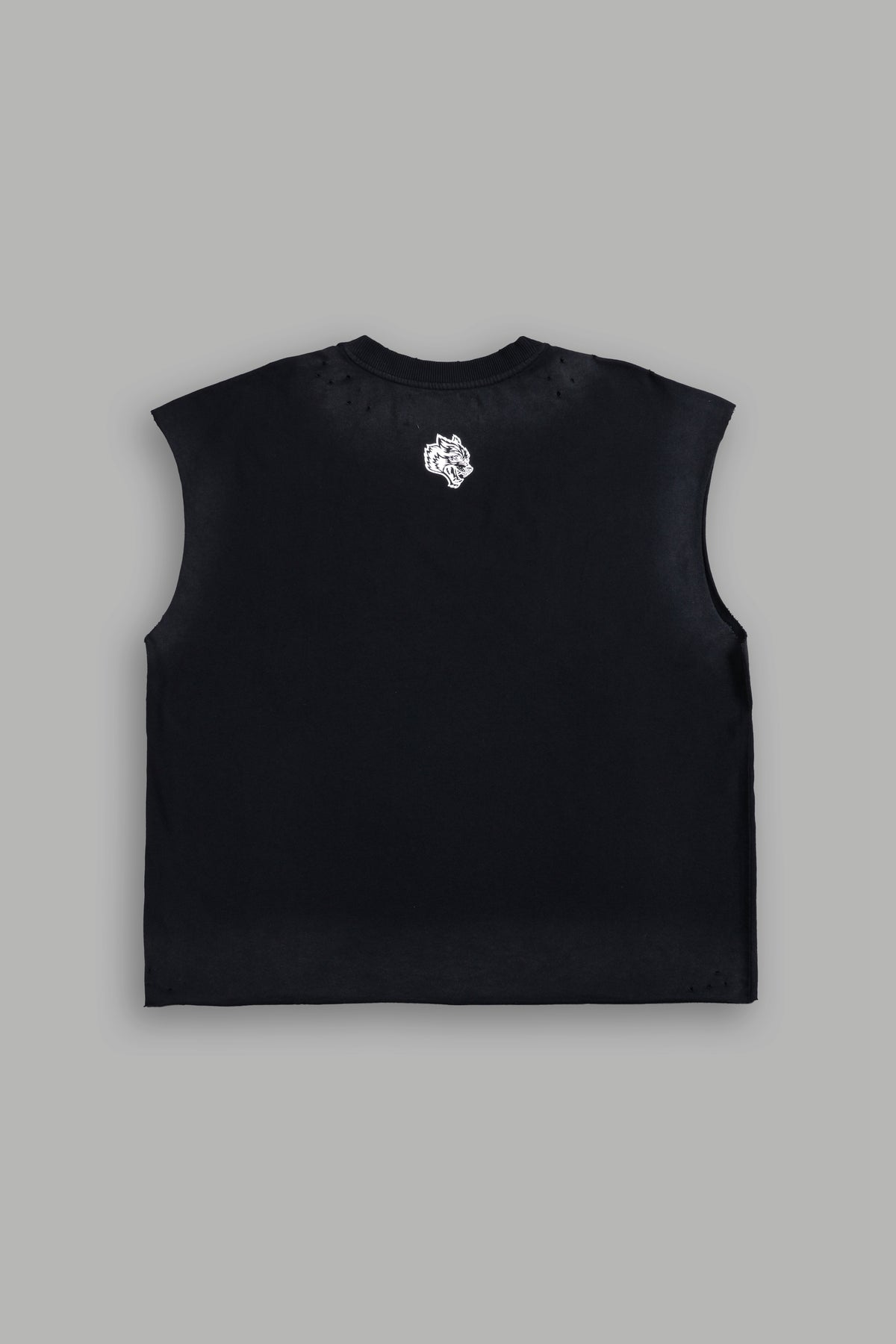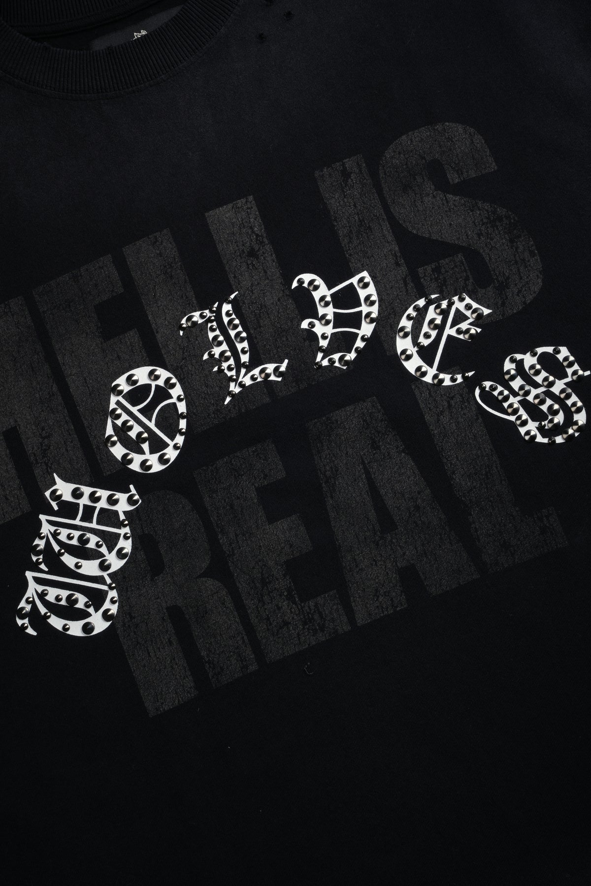Hell is Real Distressed Grunge Mid-Length Raw Hem Muscle Tee in Black Drift Wash