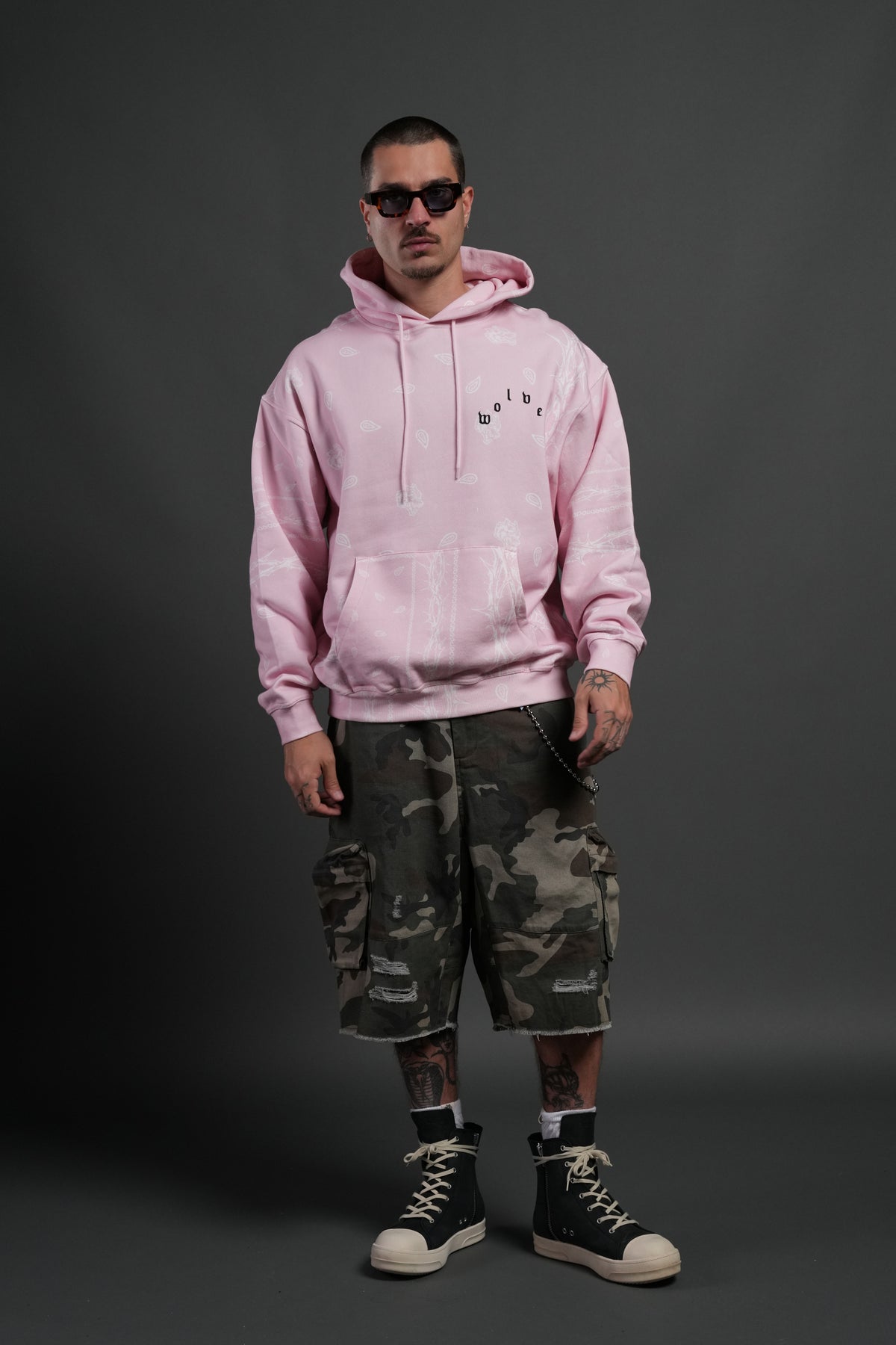 Wolves Pyramid "Bishop" Hoodie in Blush Pink Thorn Paisley