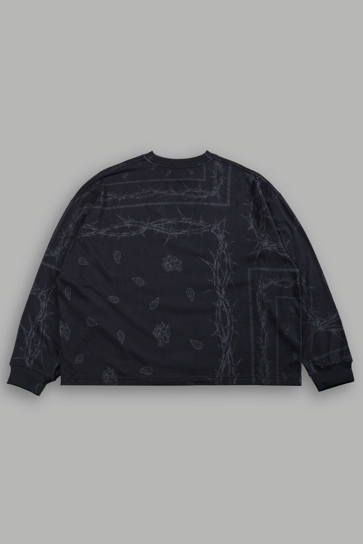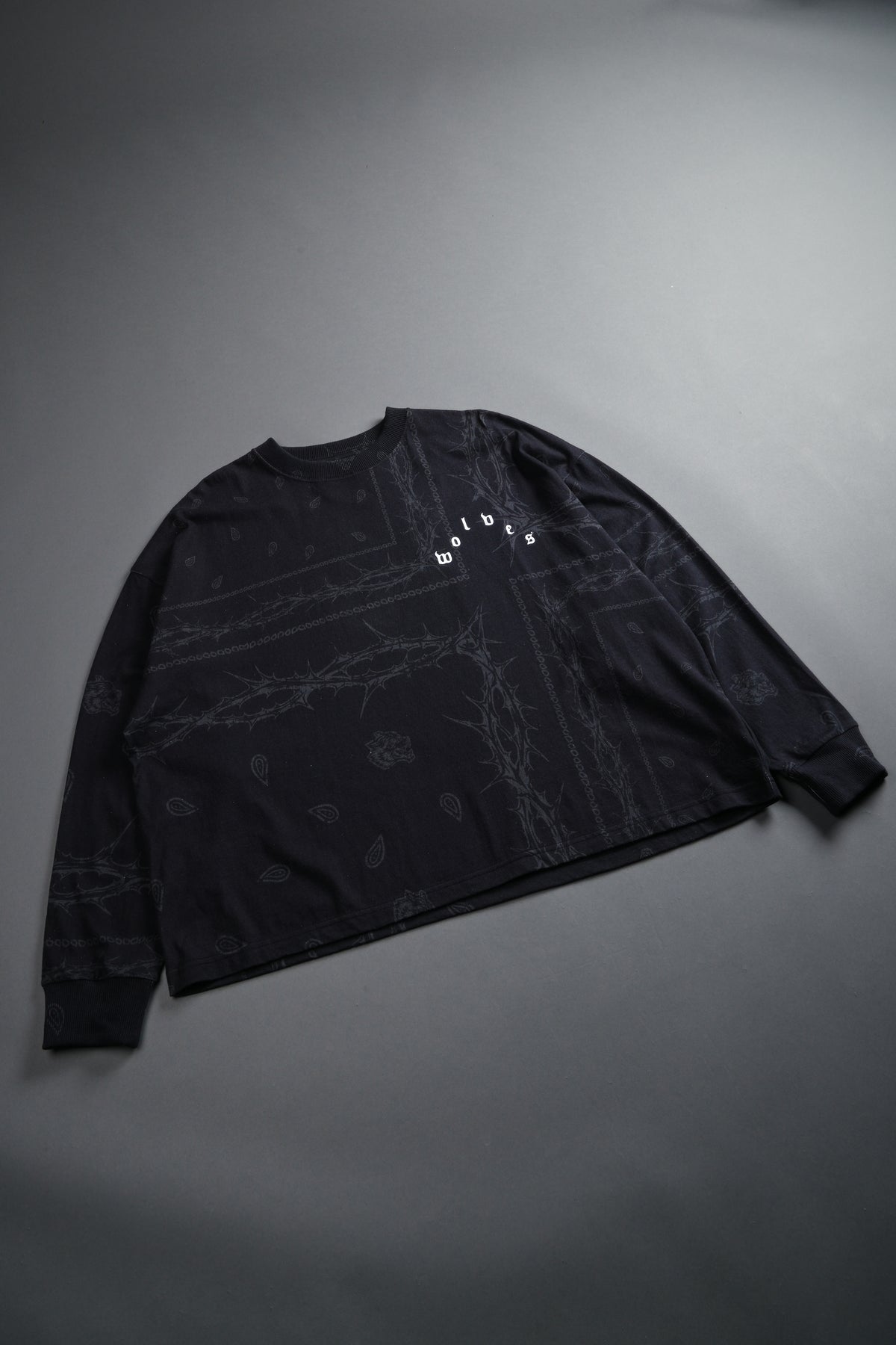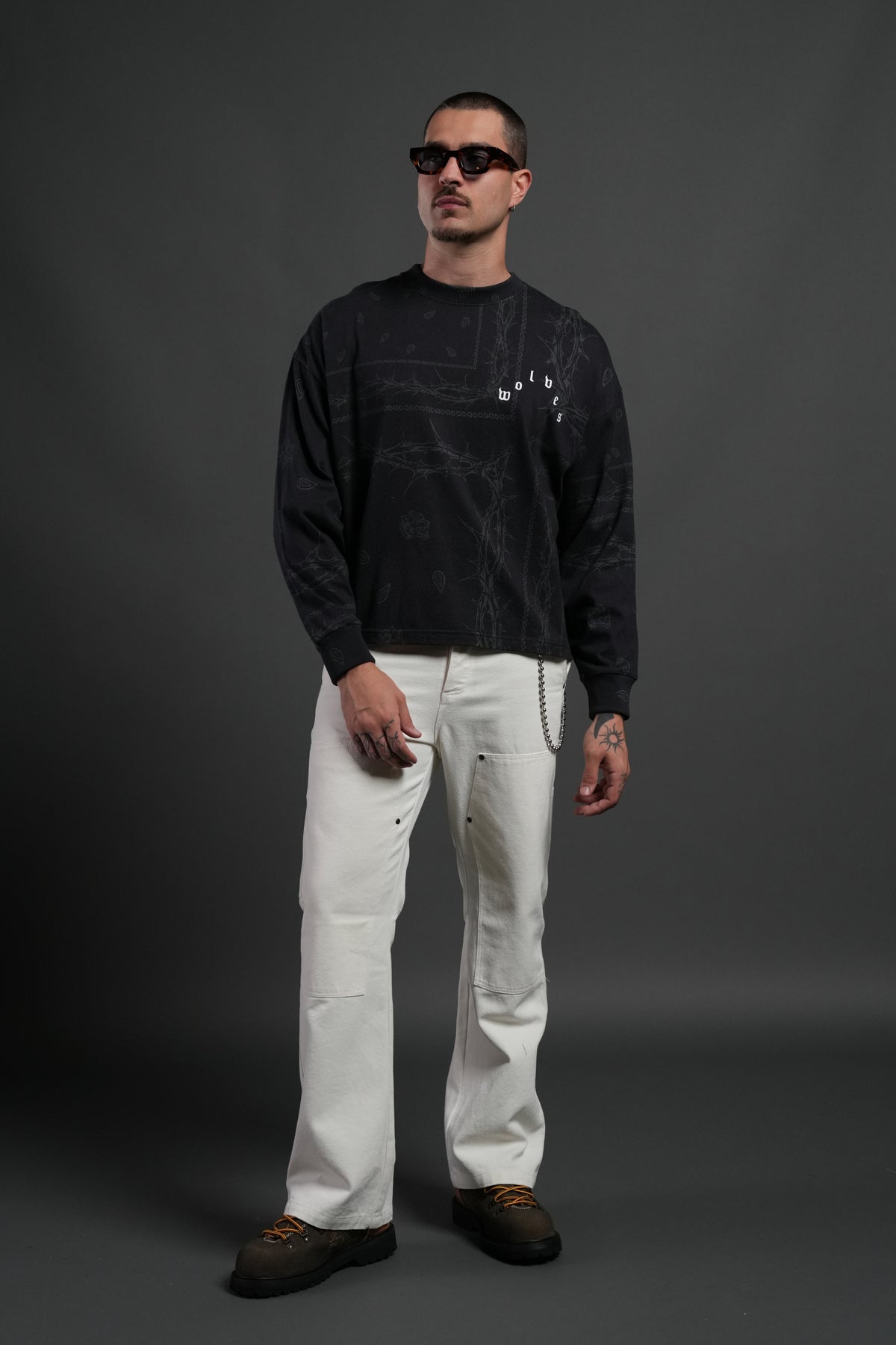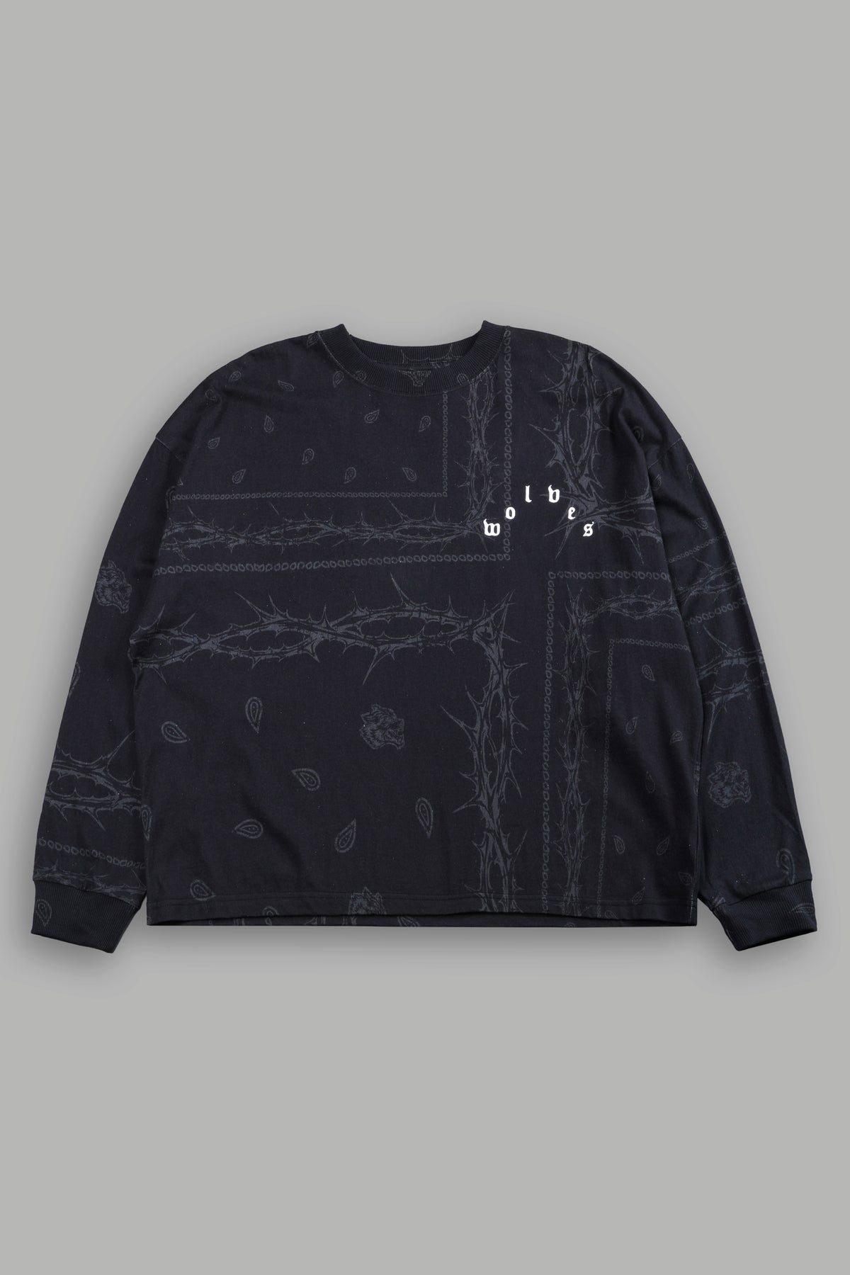 Wolves Pyramid Grunge "Box Cut" L/S Tee in Black Thorn Paisley