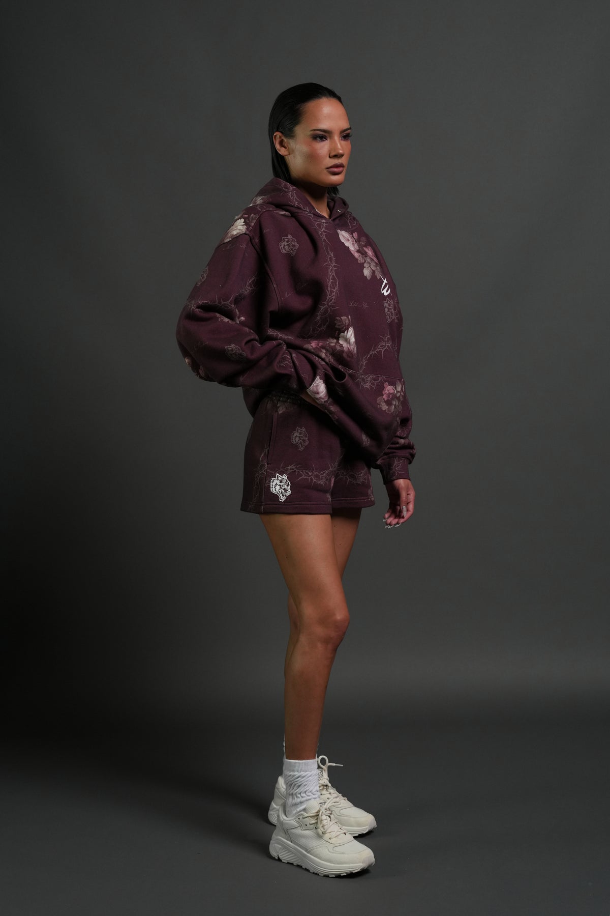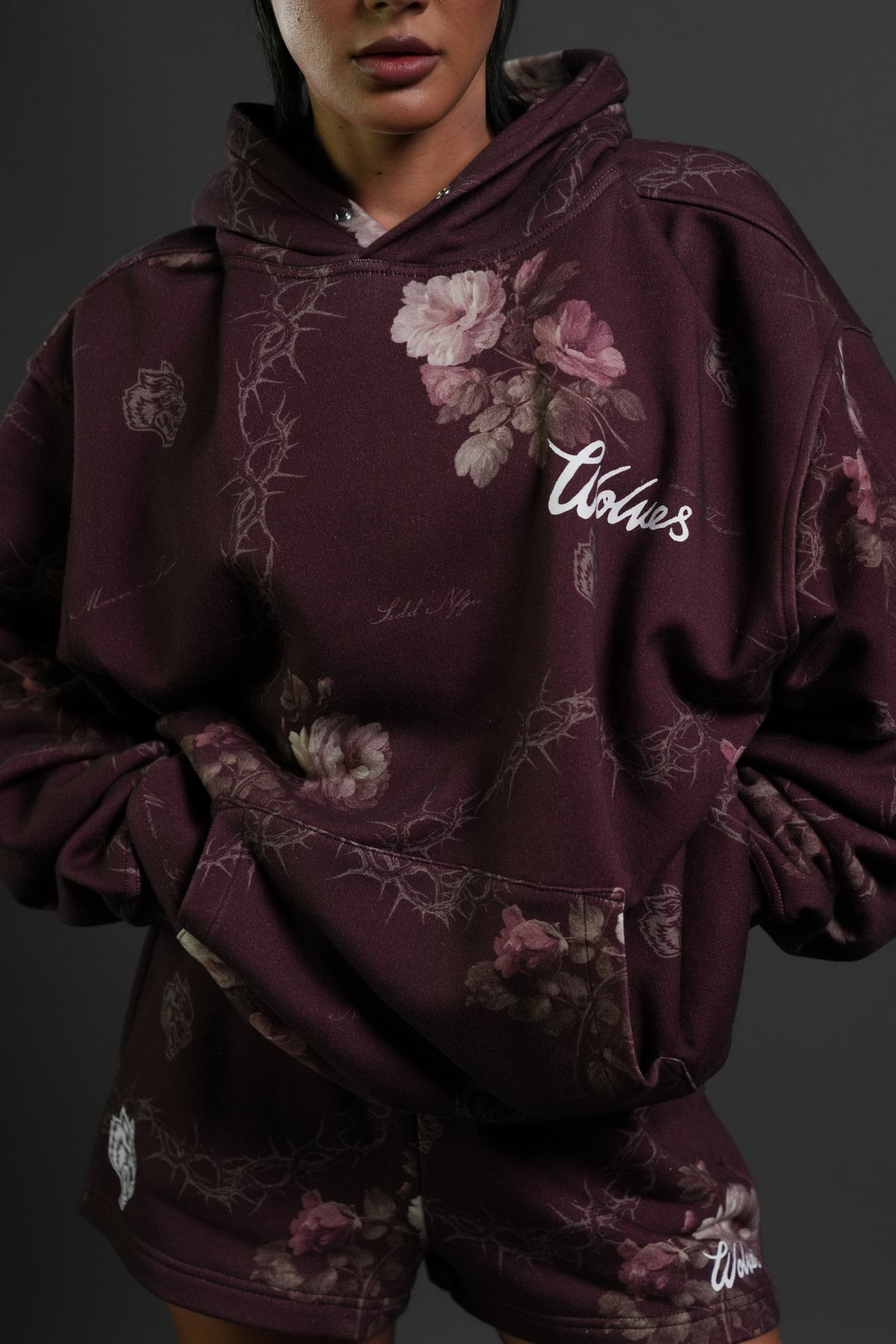 Wolves Script "Pierce" Hoodie in Cherry Wine Rose Thorn