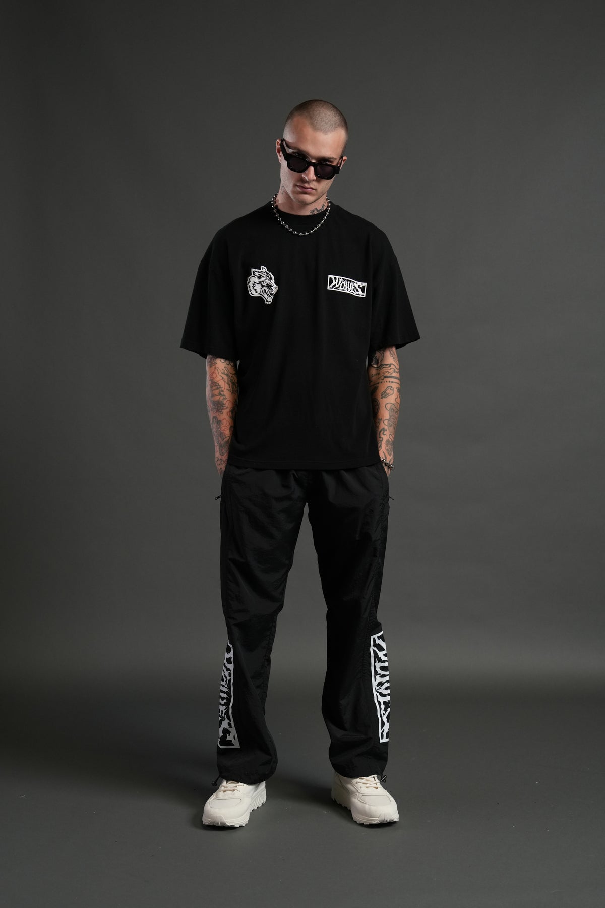Midnight Wolves Remind Track Pants in Black/Black
