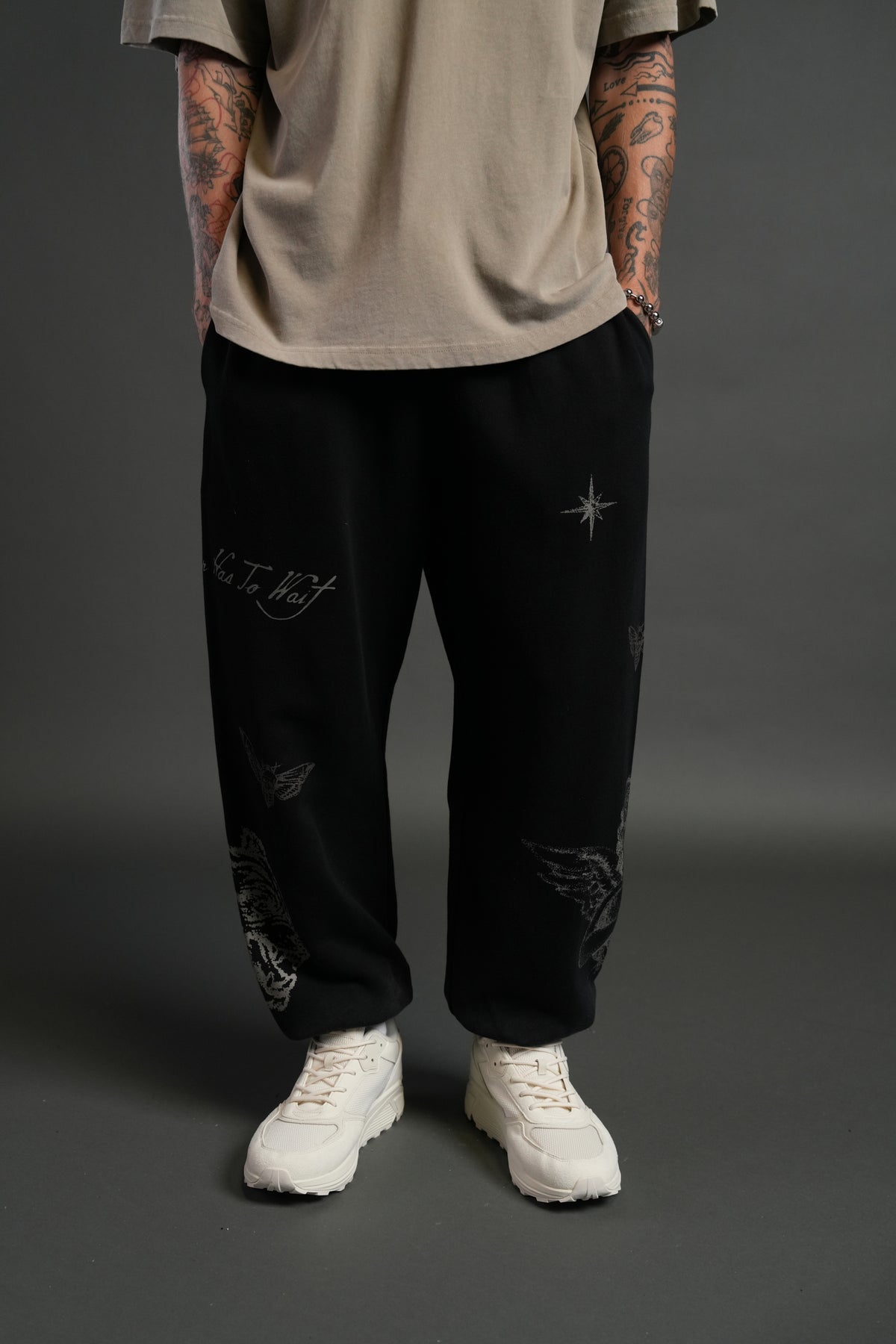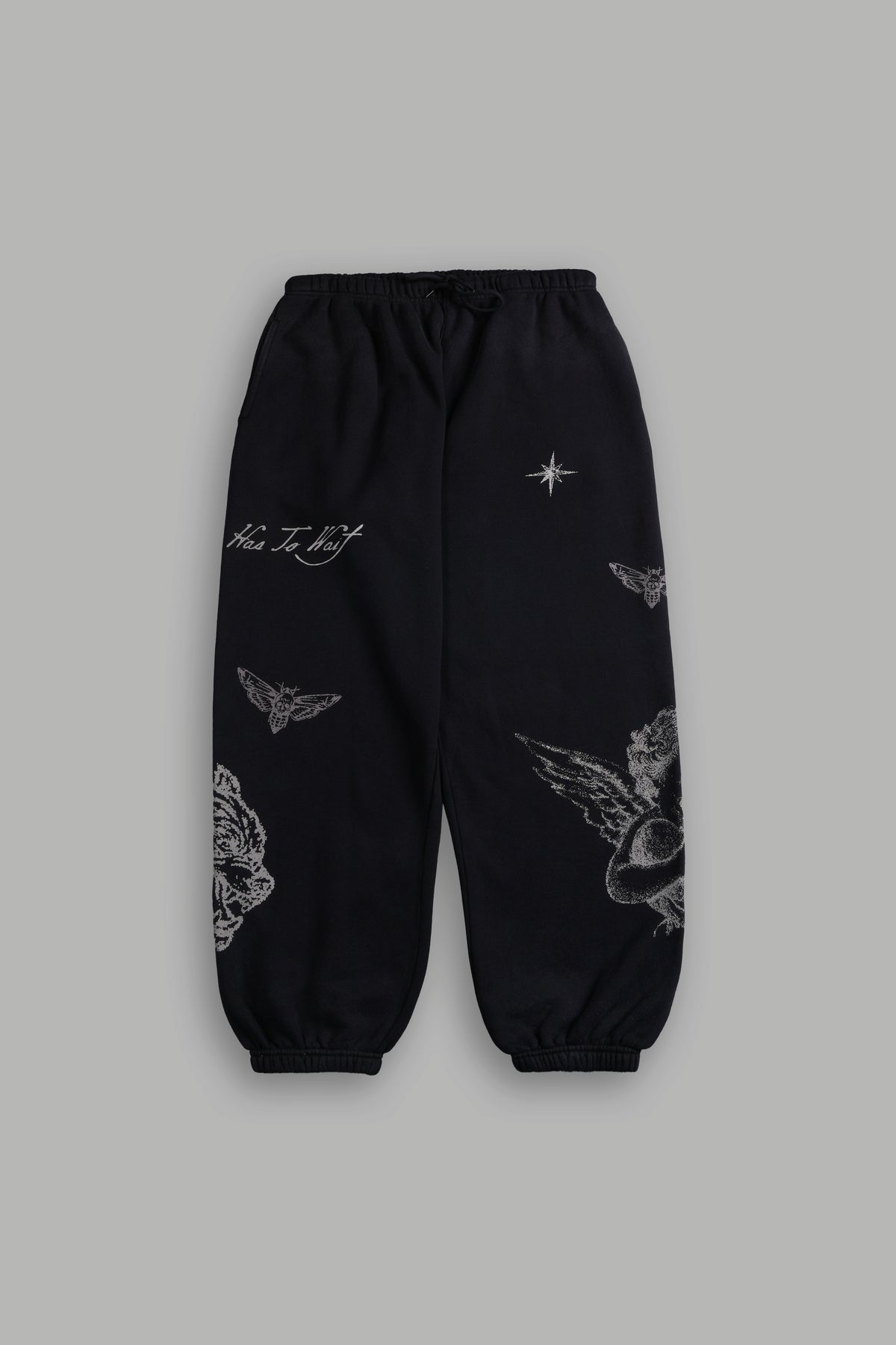 Sacred Flash Lightweight Lounger Sweat Pants in Black Drift Wash