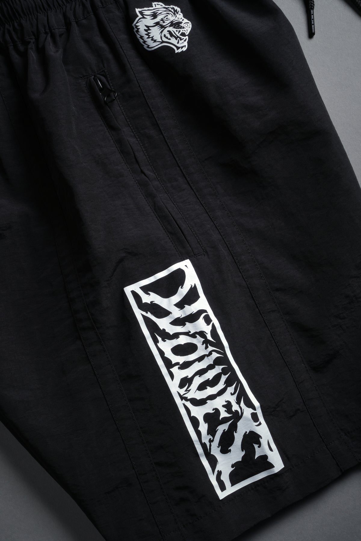 Midnight Wolves Remind Track Shorts in Black/Black