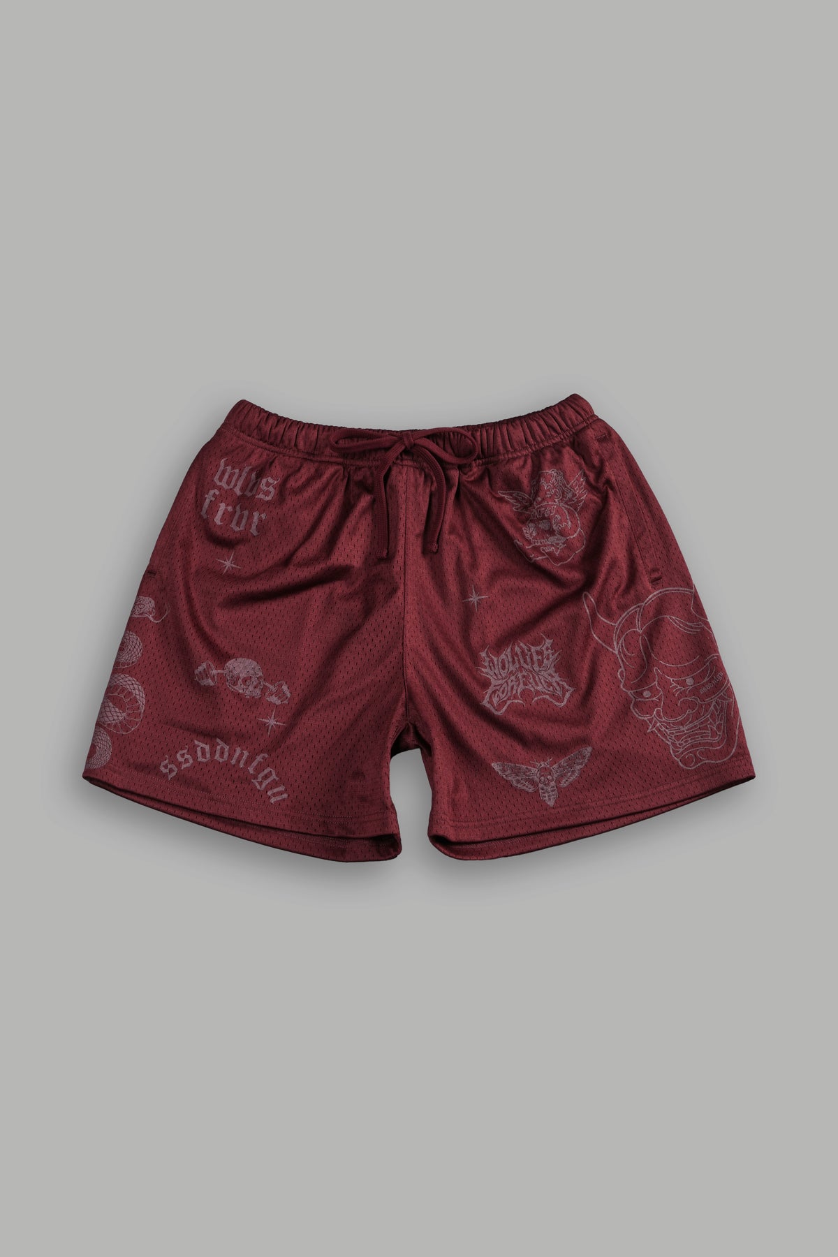 Oni Wolves Mesh Shorts in Oxblood