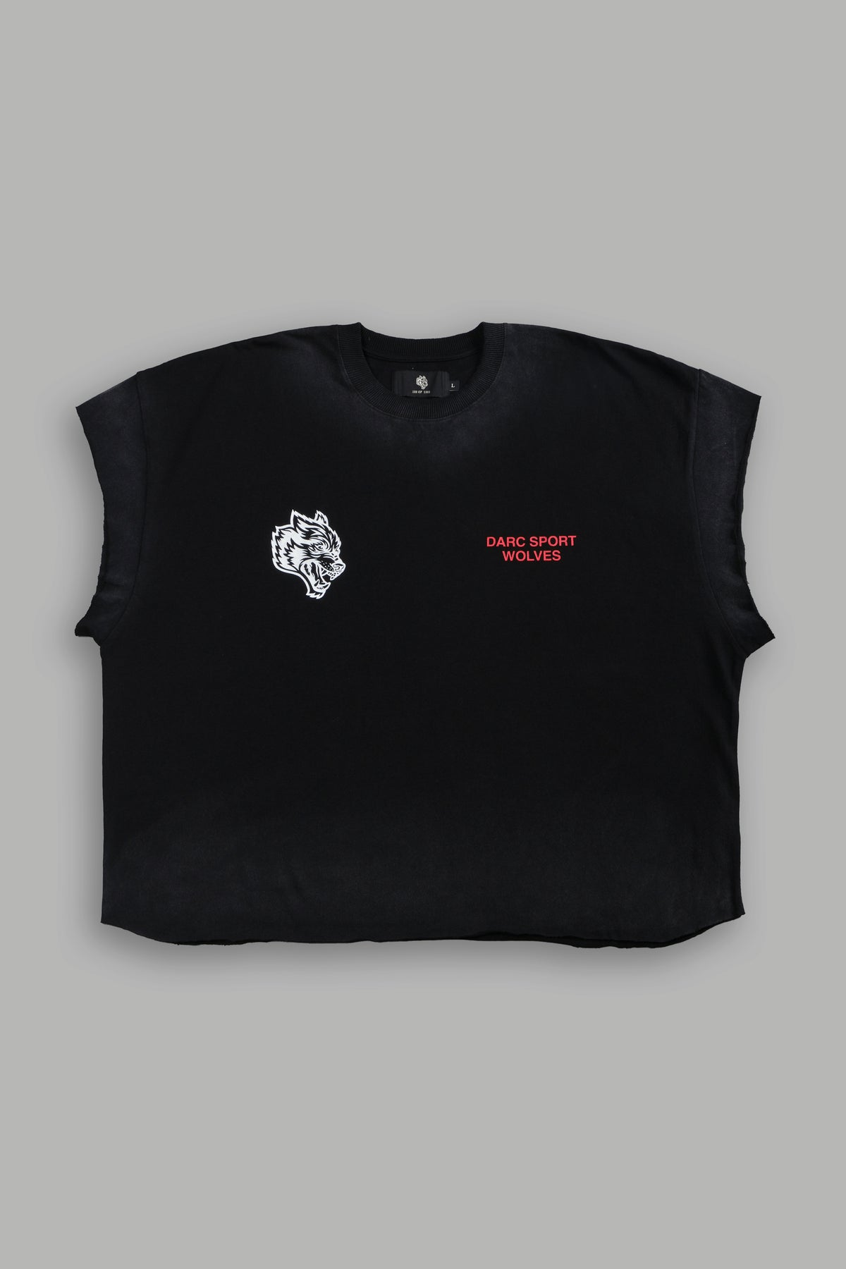 Pegasus Storm Grunge Cut-Off Tee in Black Drift Wash