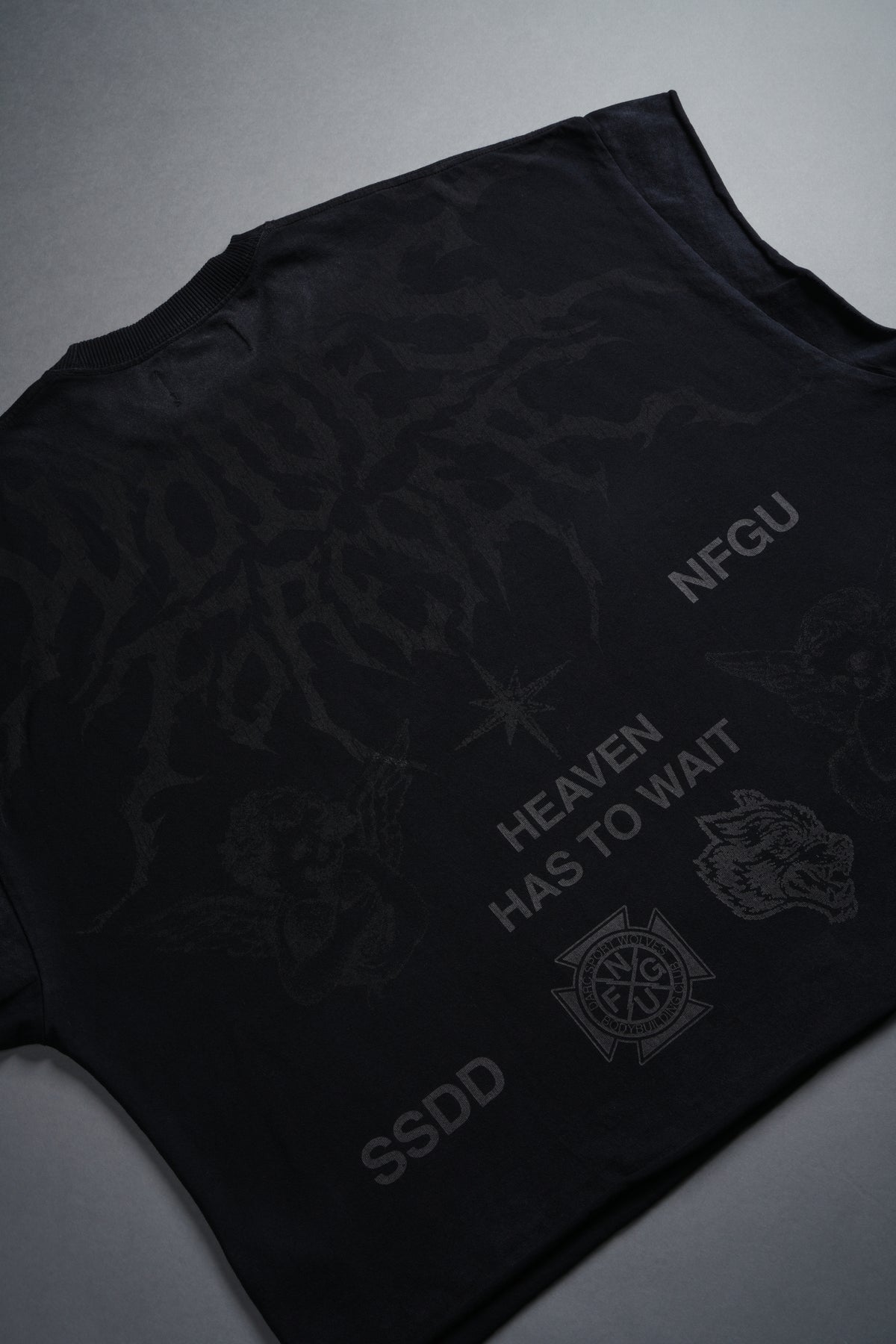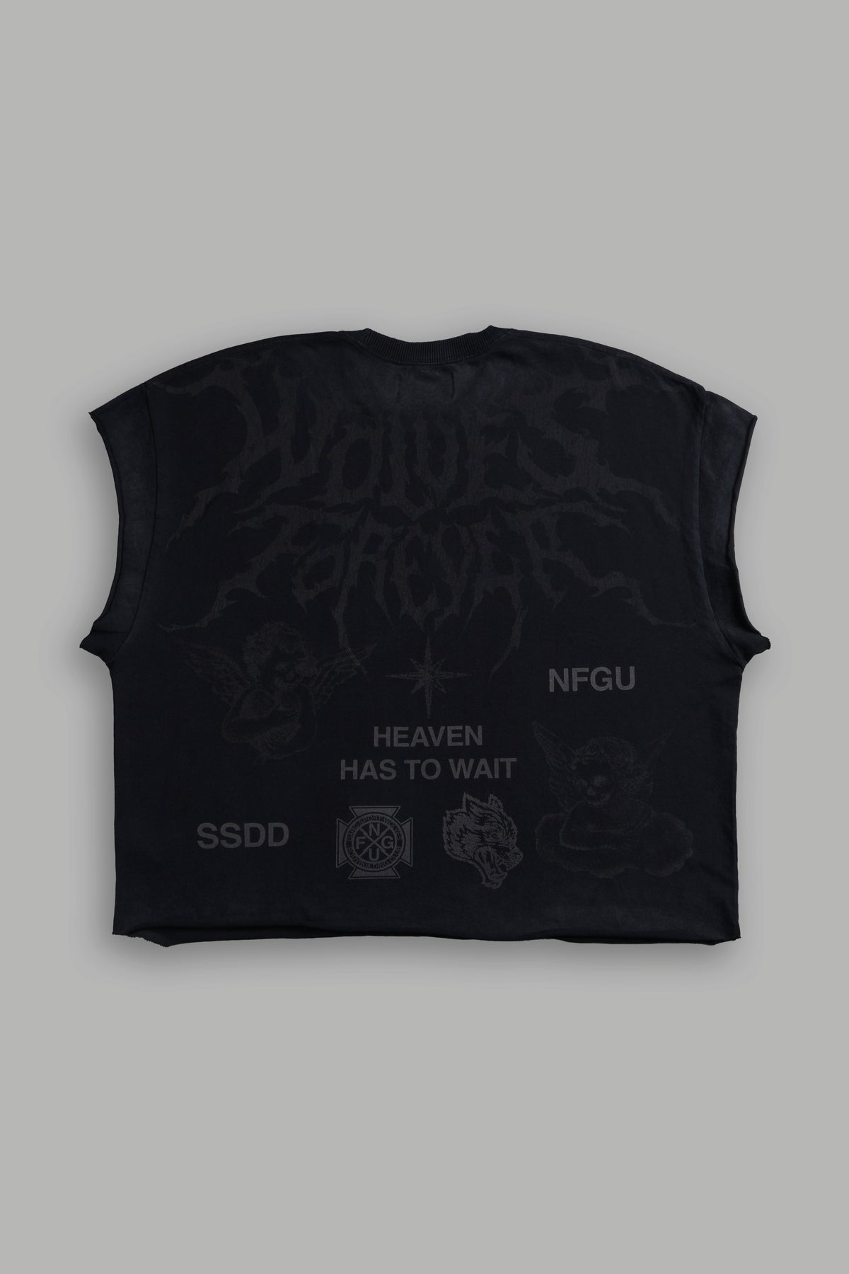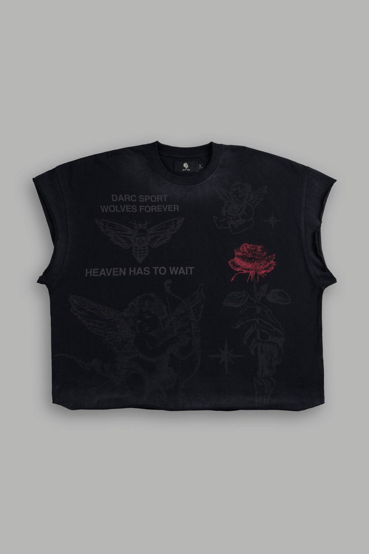 Sacred Flash Grunge Cut-Off Tee in Black Drift Wash