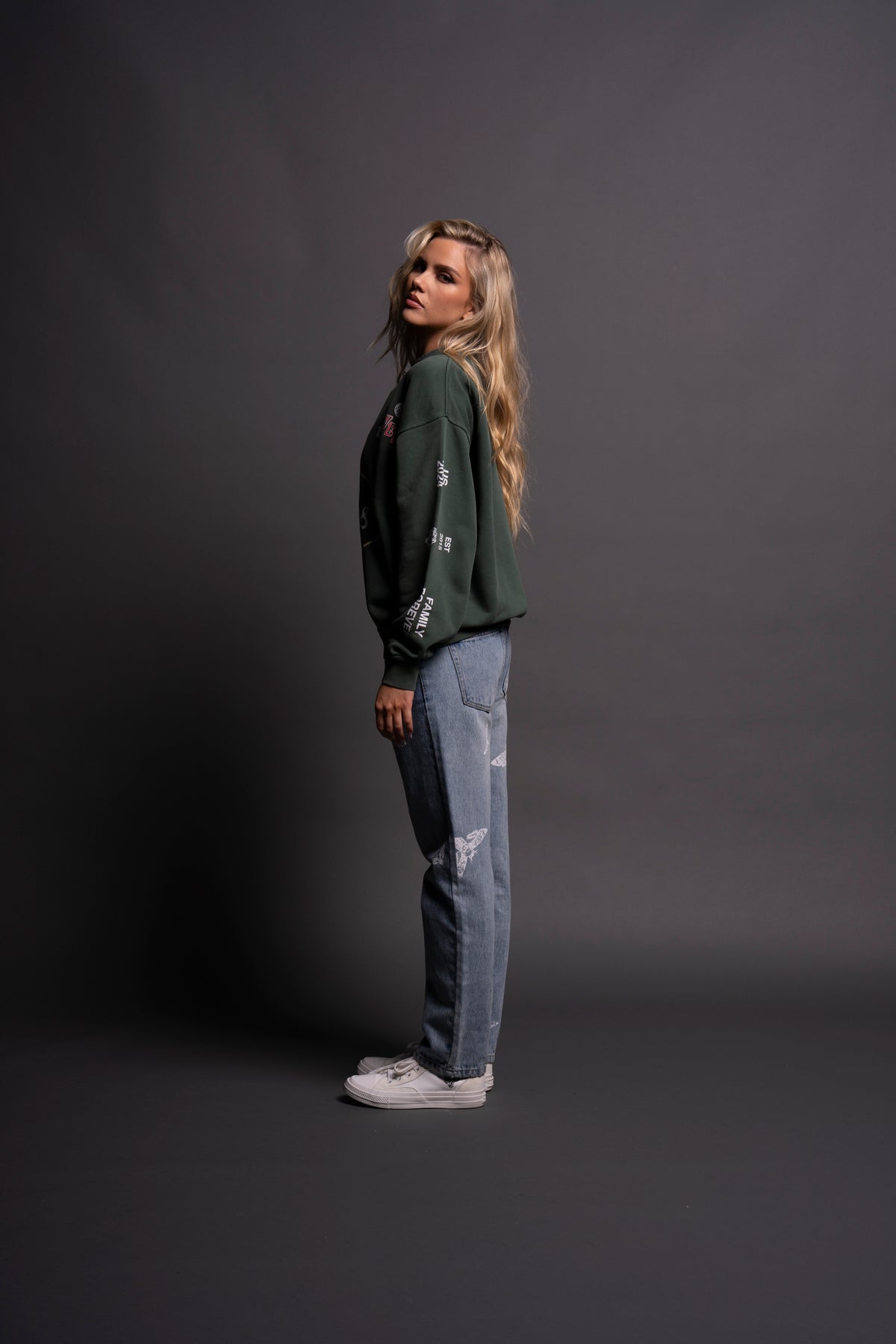 Live Fast V2 She London Crewneck in Norse Green