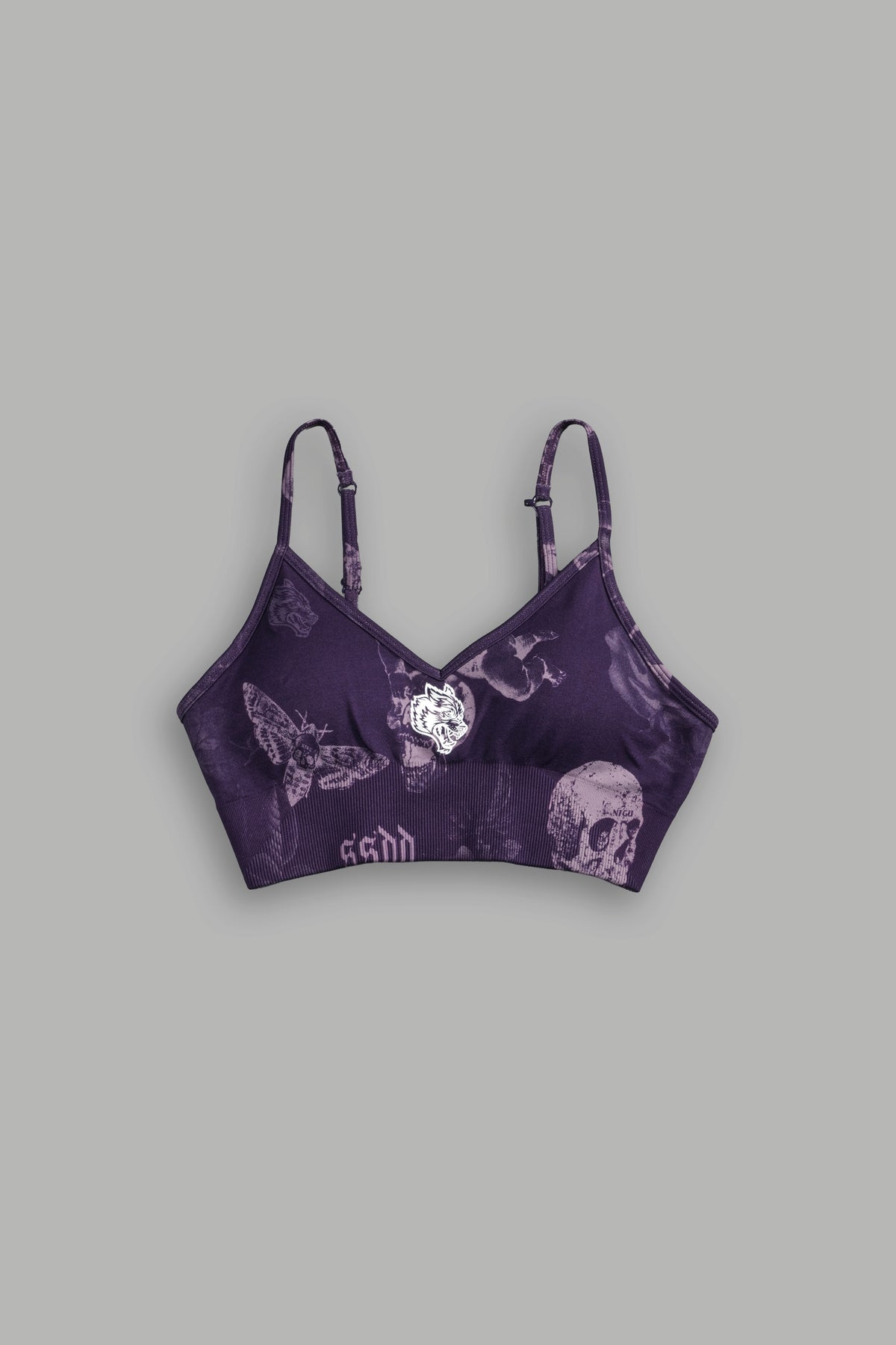 Single Wolf "Everson" Seamless Sports Bra in Leopard Purple Vanitas Fl