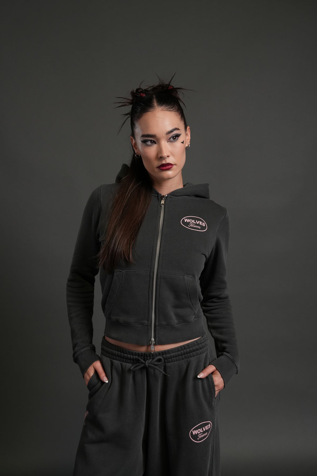 Our Time "Iris" Zip Up She Hoodie in Wolf Gray