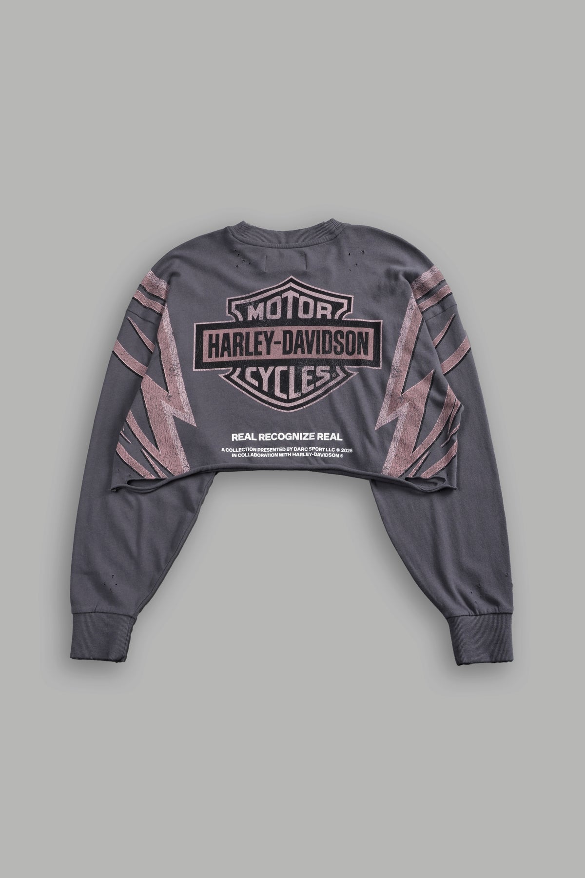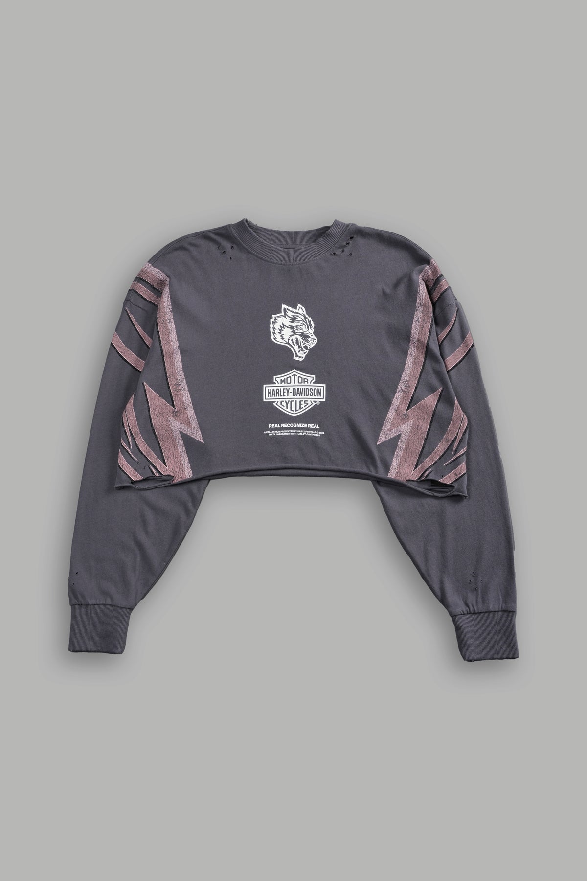 Real Recognize Real Distressed Oversized Cropped L/S Tee in Slate Gray