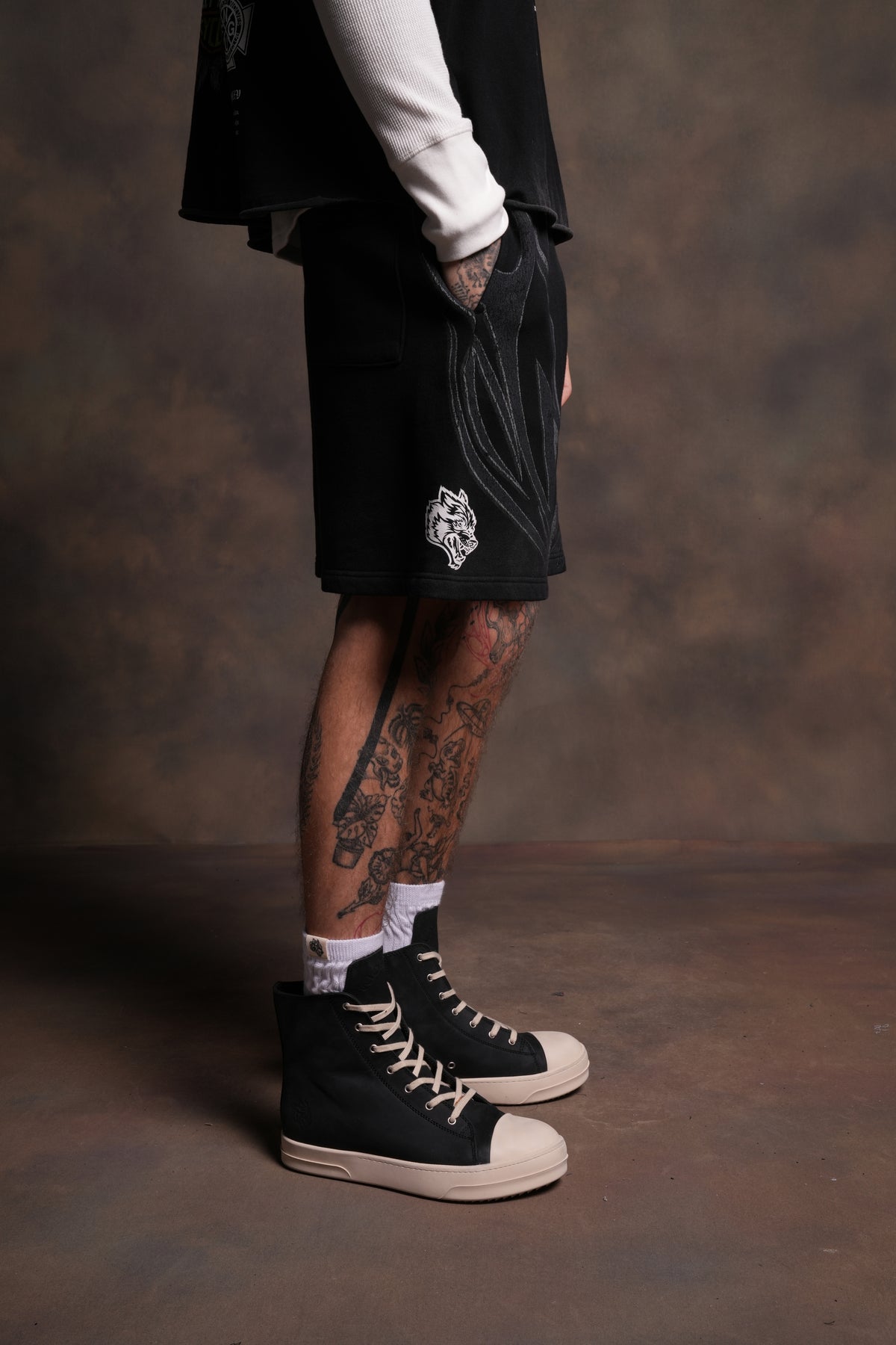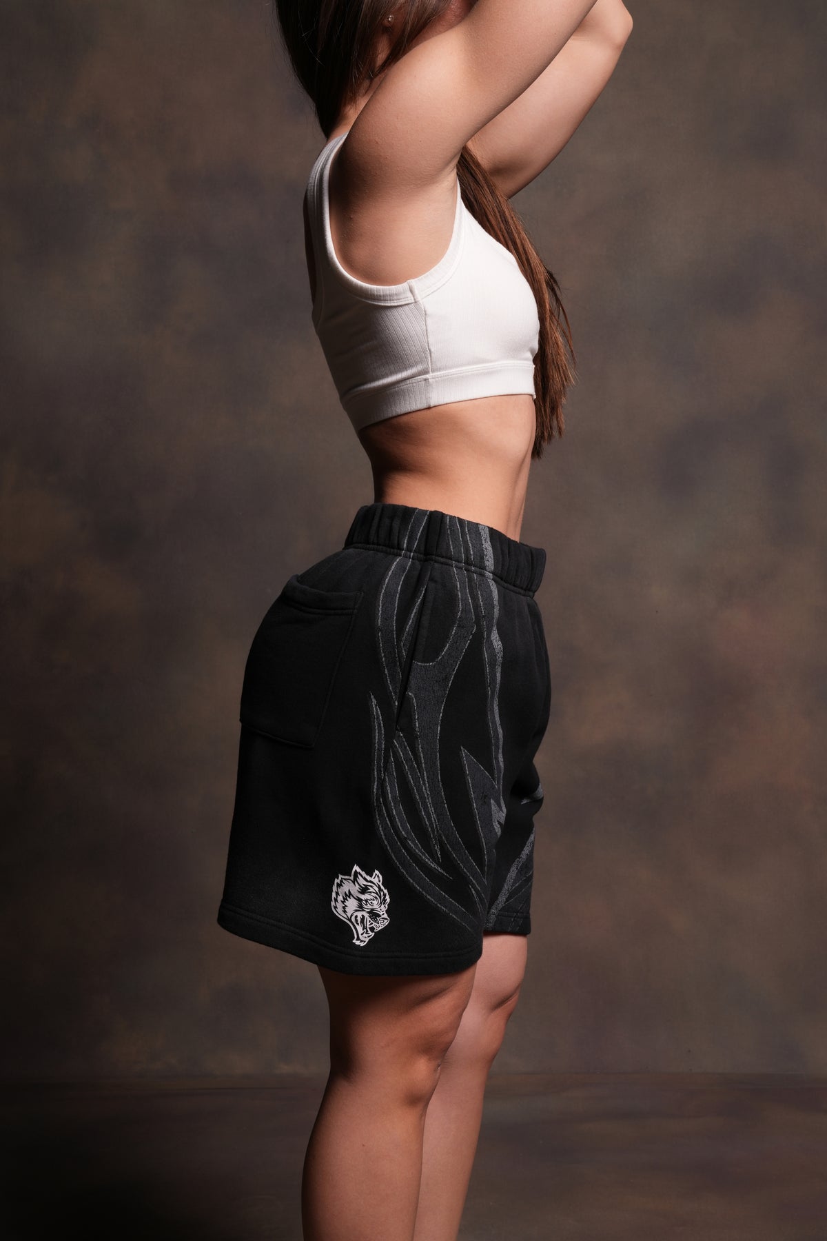 Real Recognize Real Unisex Oversized Post Lounge Sweat Shorts V2 in Black Drift Wash