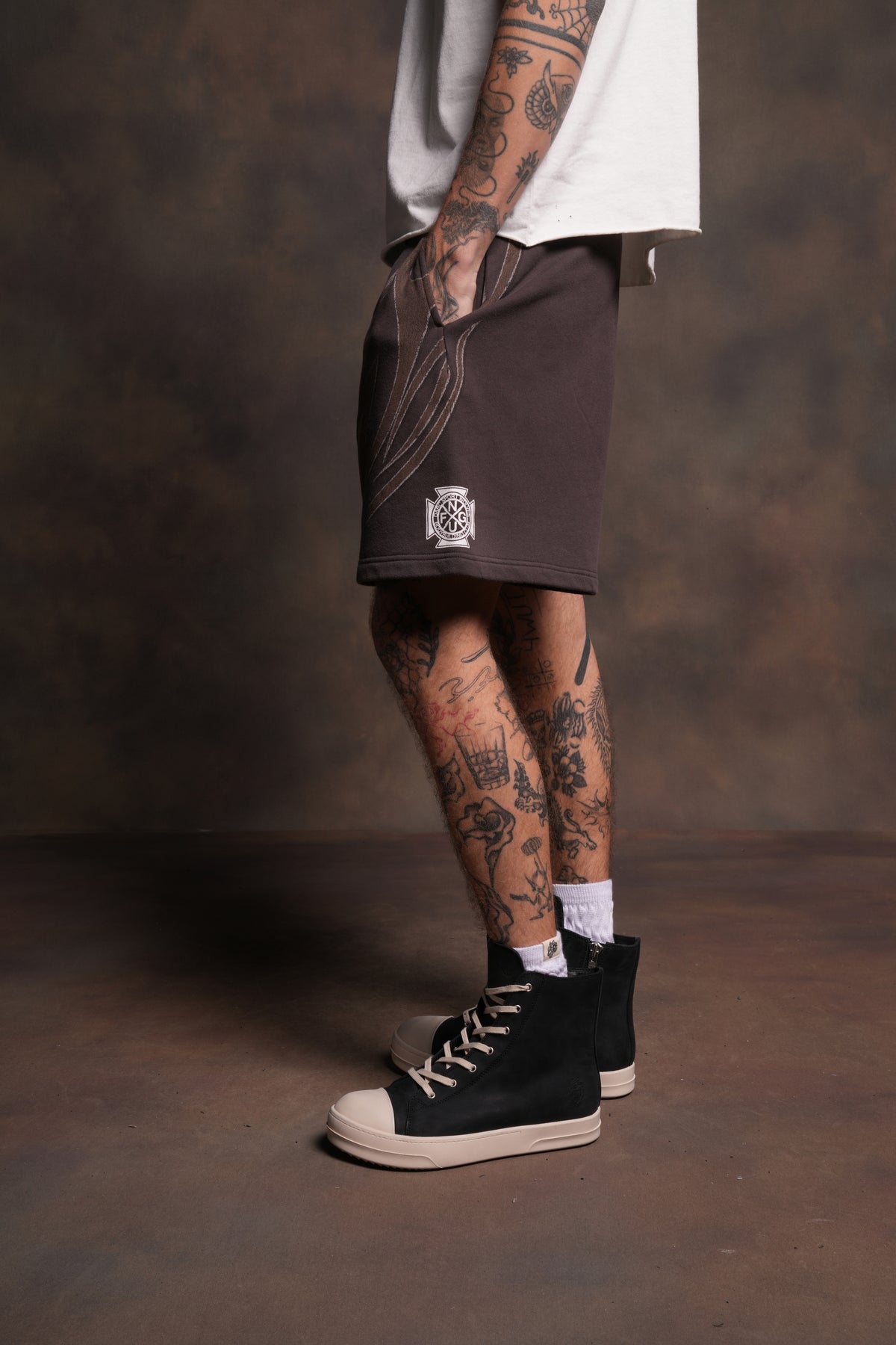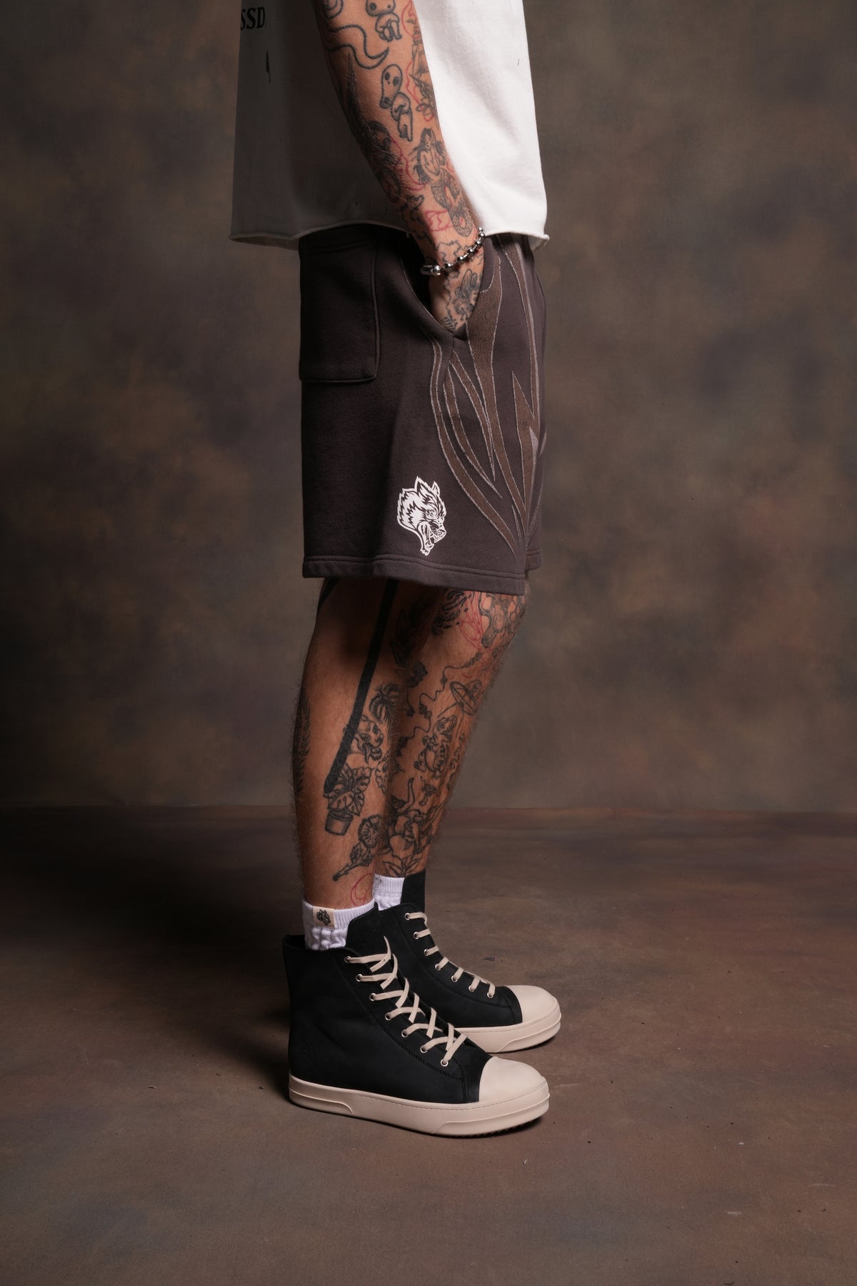 Real Recognize Real Unisex Oversized Post Lounge Sweat Shorts V2 in Darc Brown Drift Wash