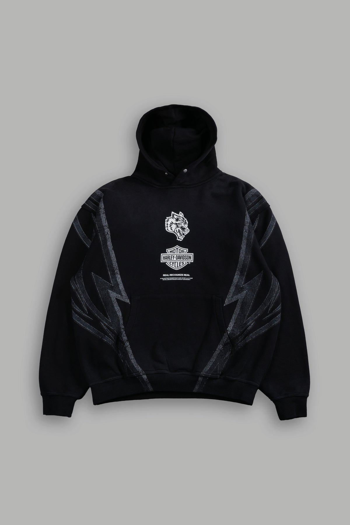 Real Recognize Real Unisex "Pierce" Hoodie in Black Drift Wash