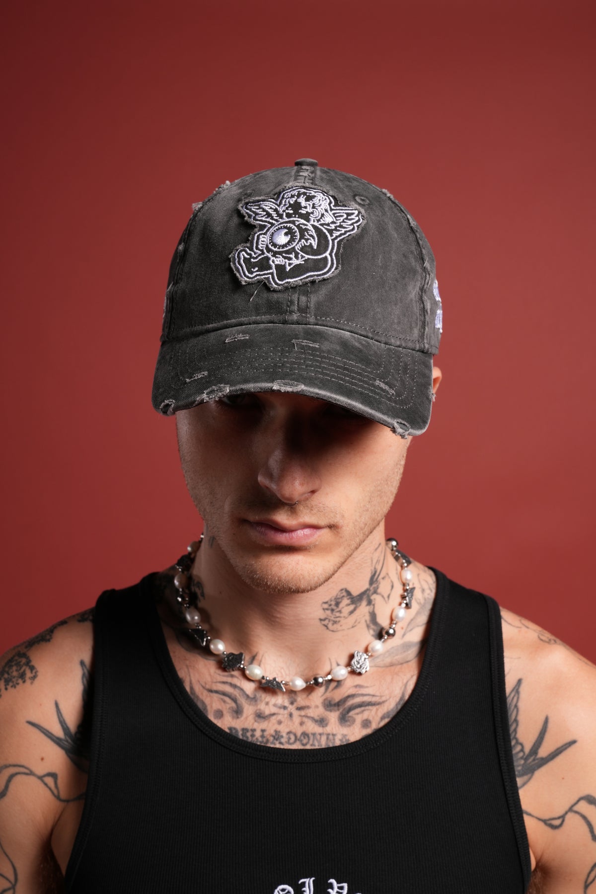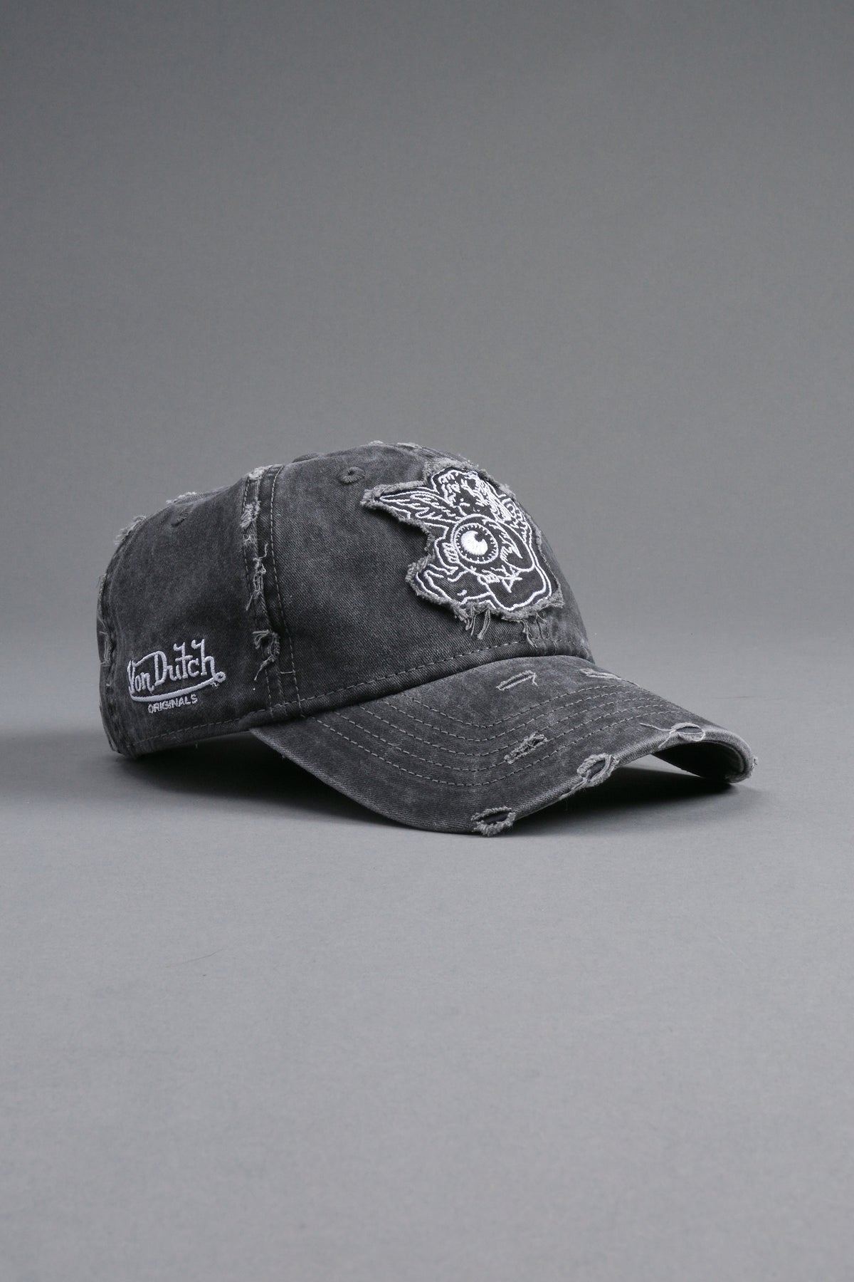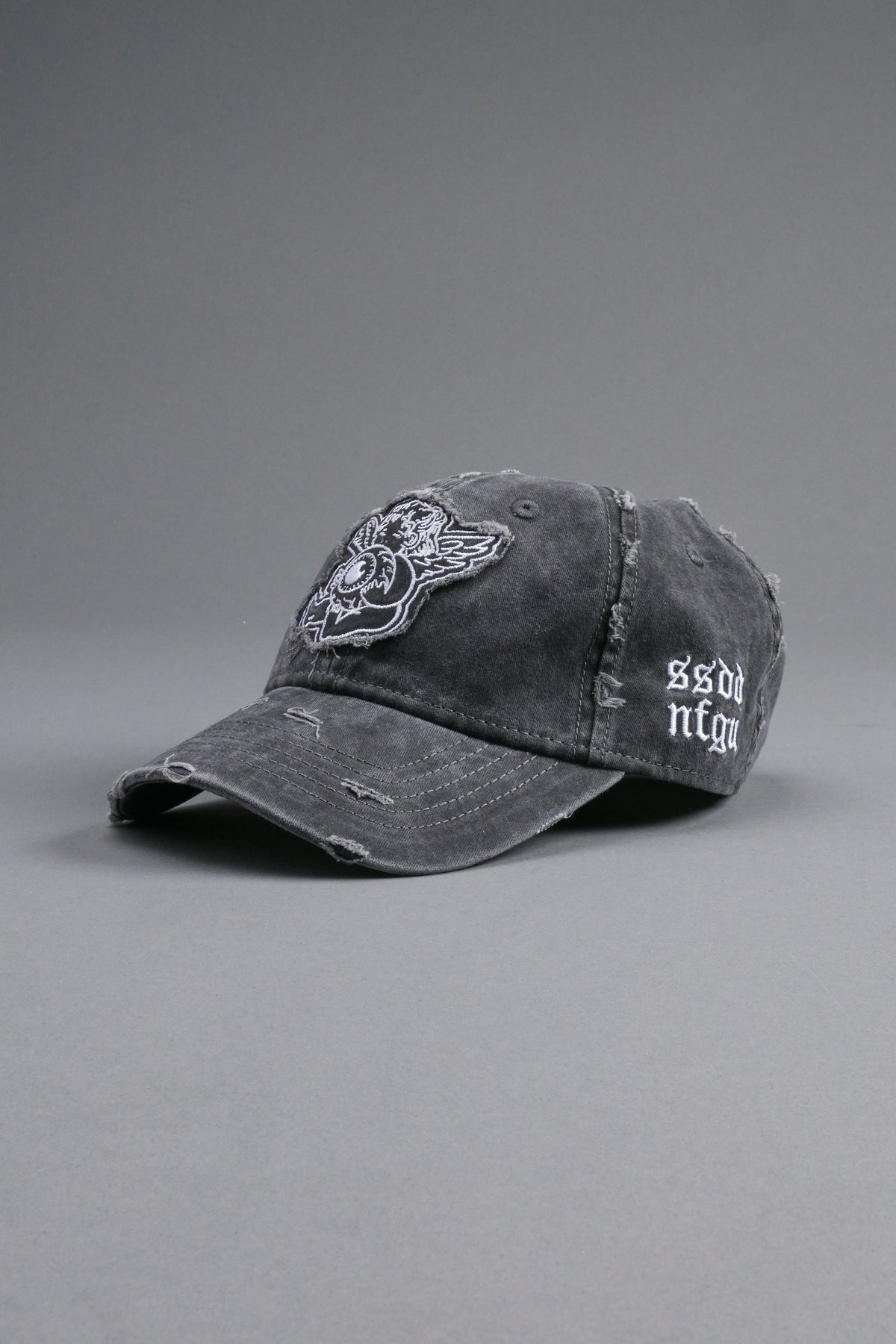 Cherub Eye Ball Distressed Dad Hat in Washed Black