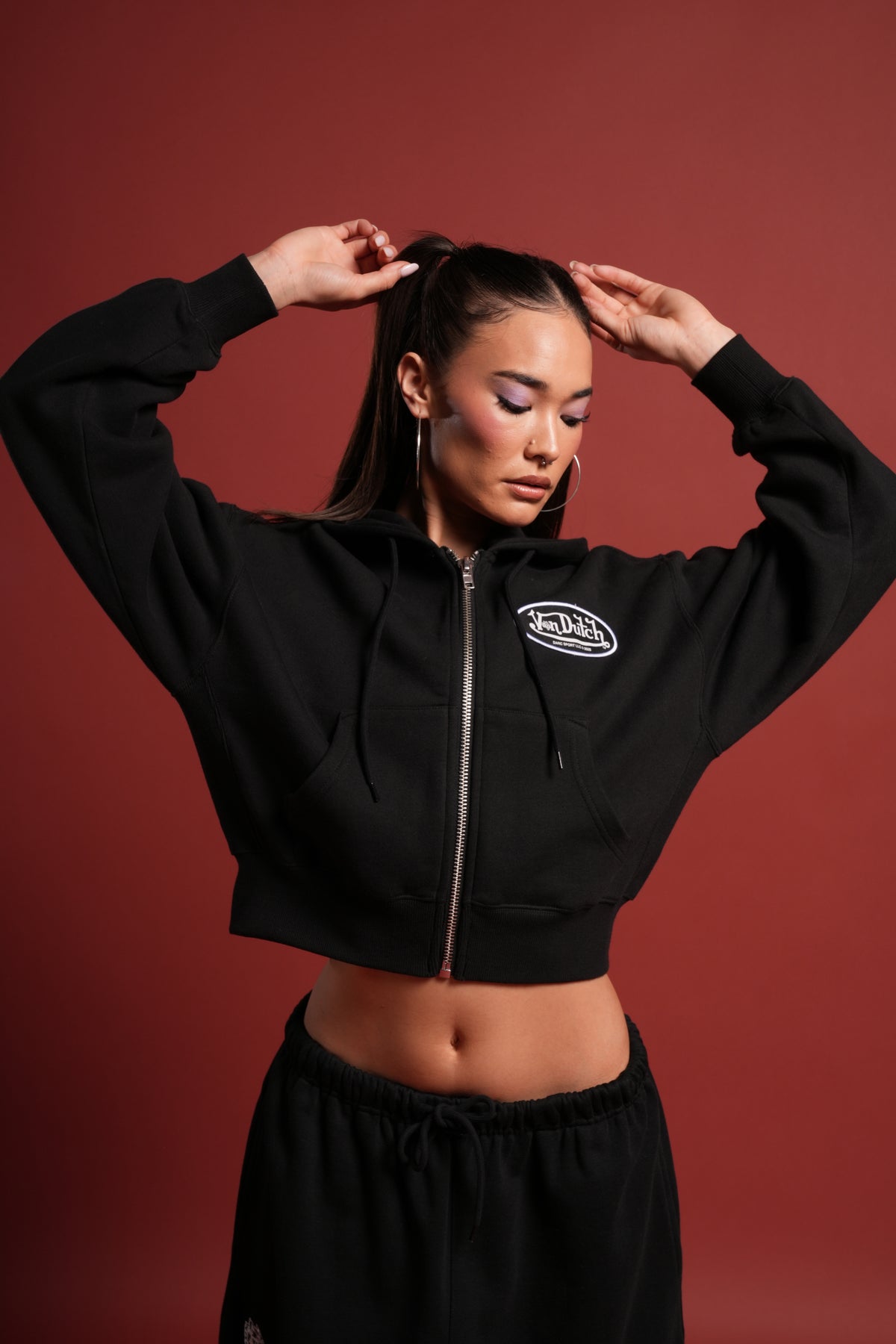 Y2Kulture "Sage" Cropped Zip Hoodie in Black