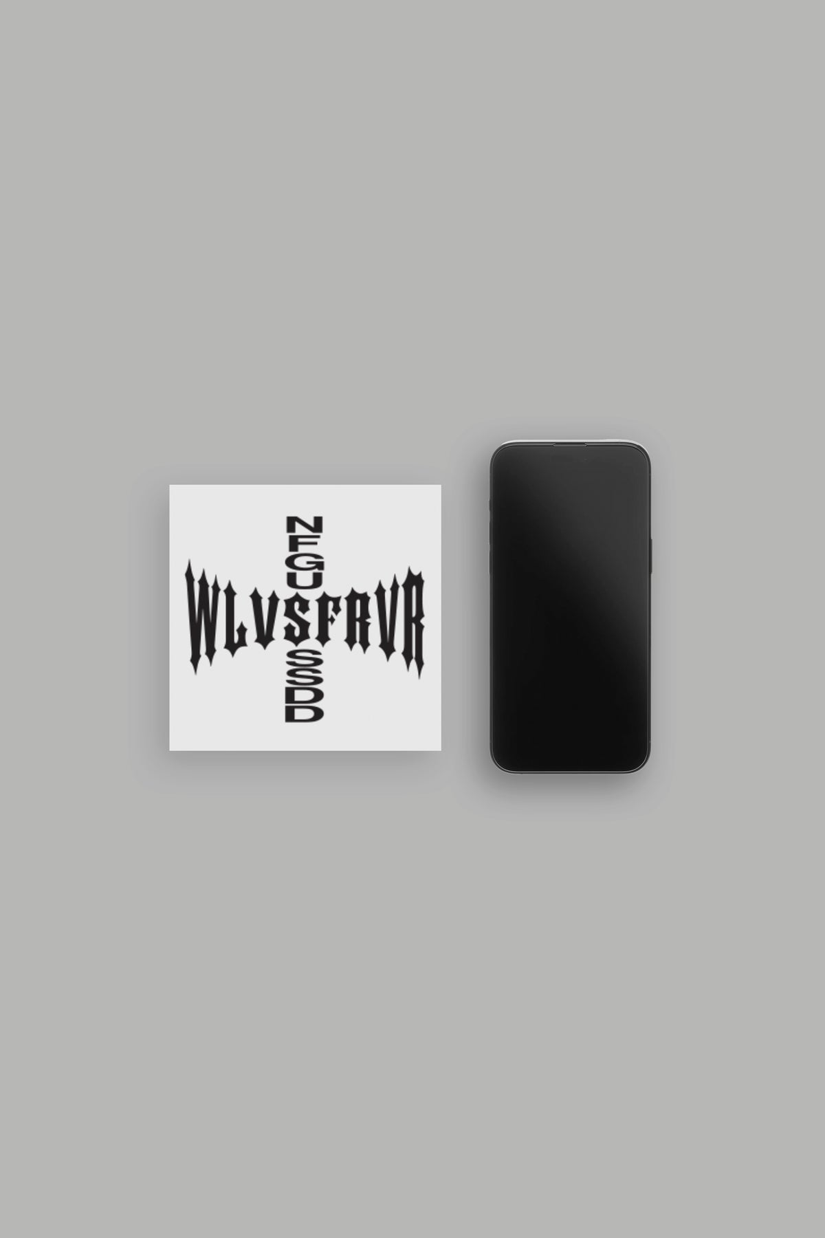 Decal pictured with iPhone 15 Pro for size scale