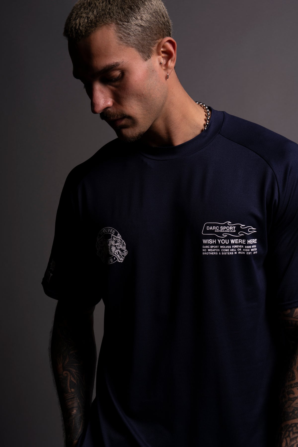 Established "Dry Wolf" Raglan Tee in Navy
