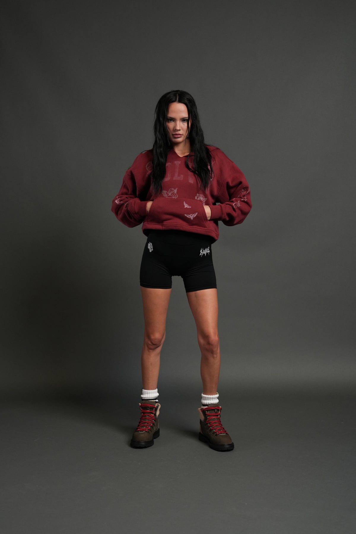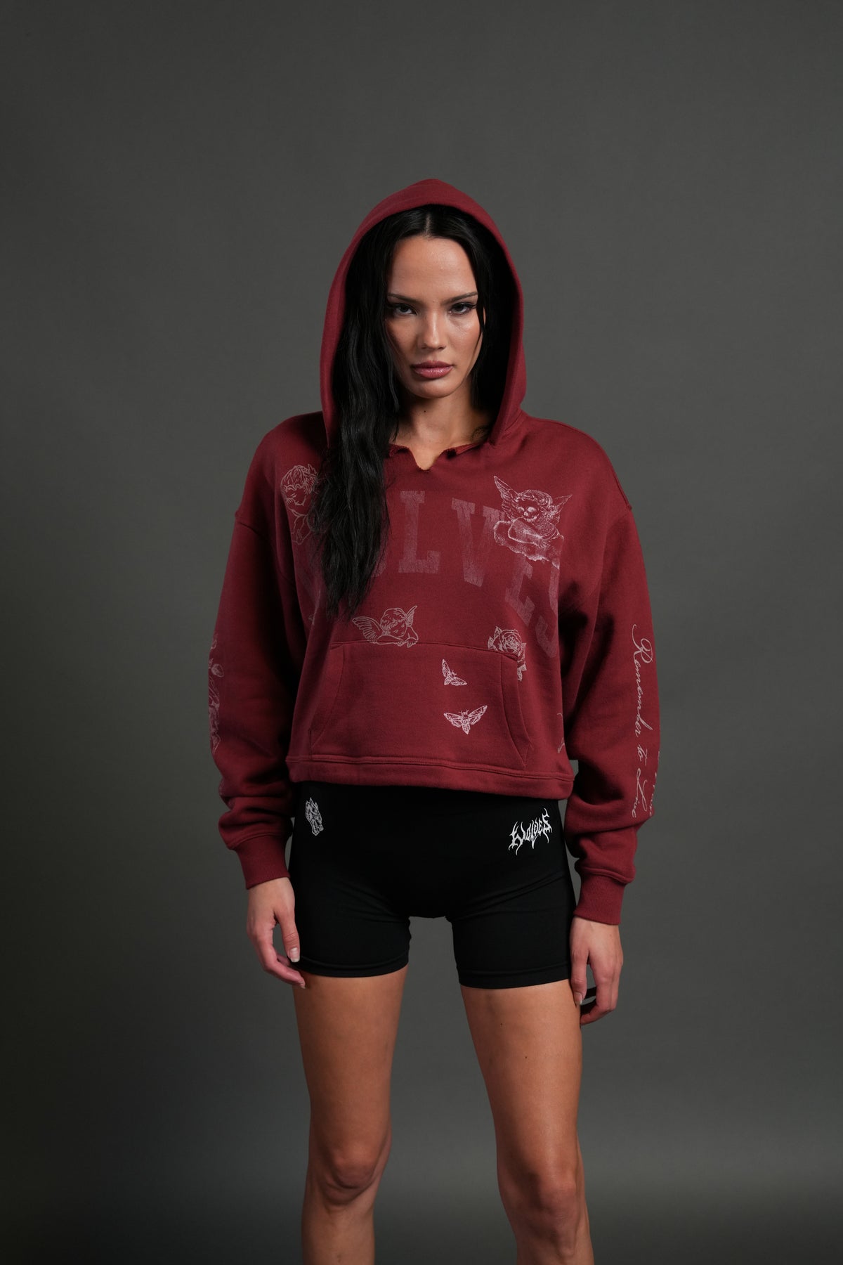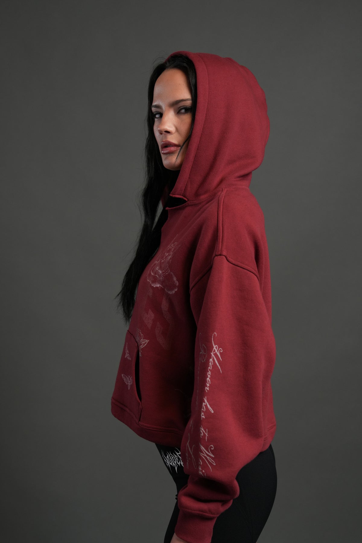 Fallen Cherub "Dempsey" (Cropped) Hoodie in Cherry Red