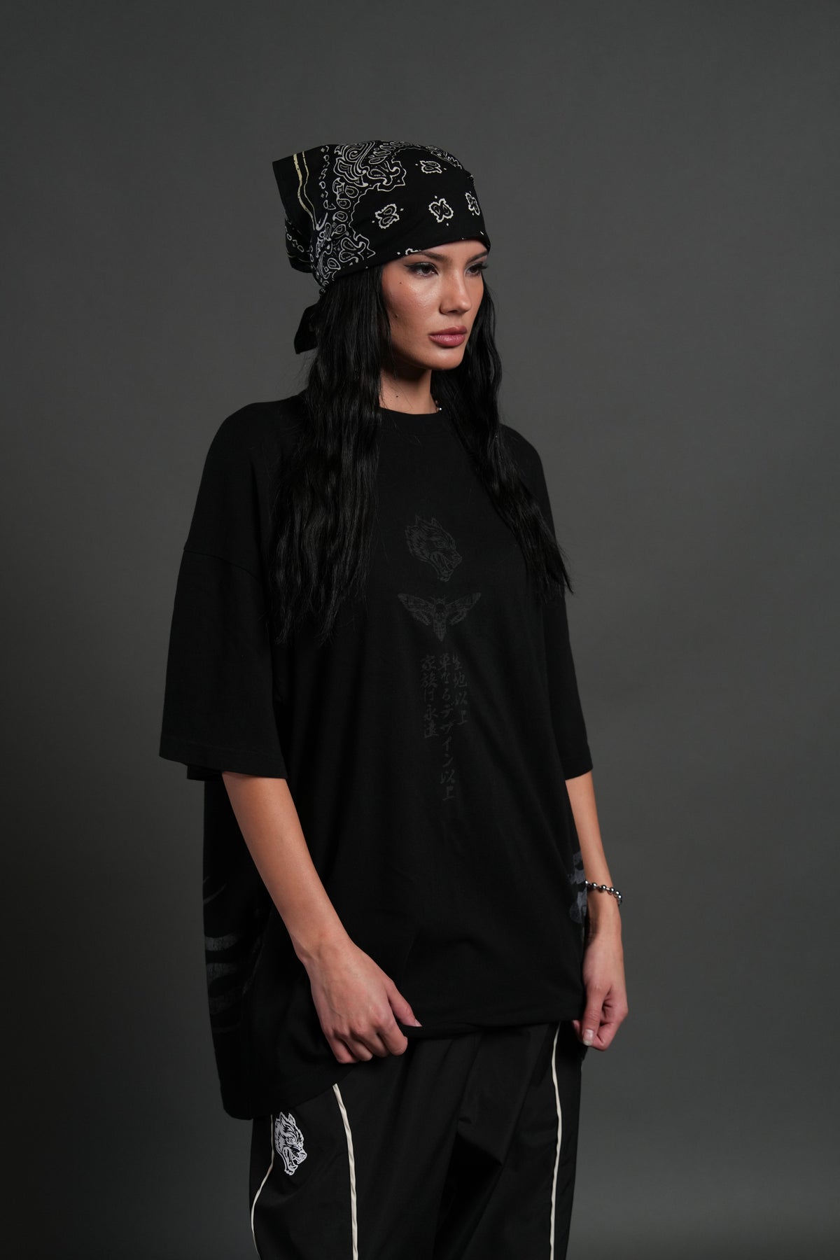 Kokushibo "Side By Side" Series Premium Oversized Tee in Black