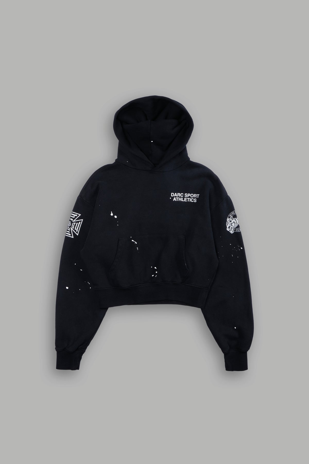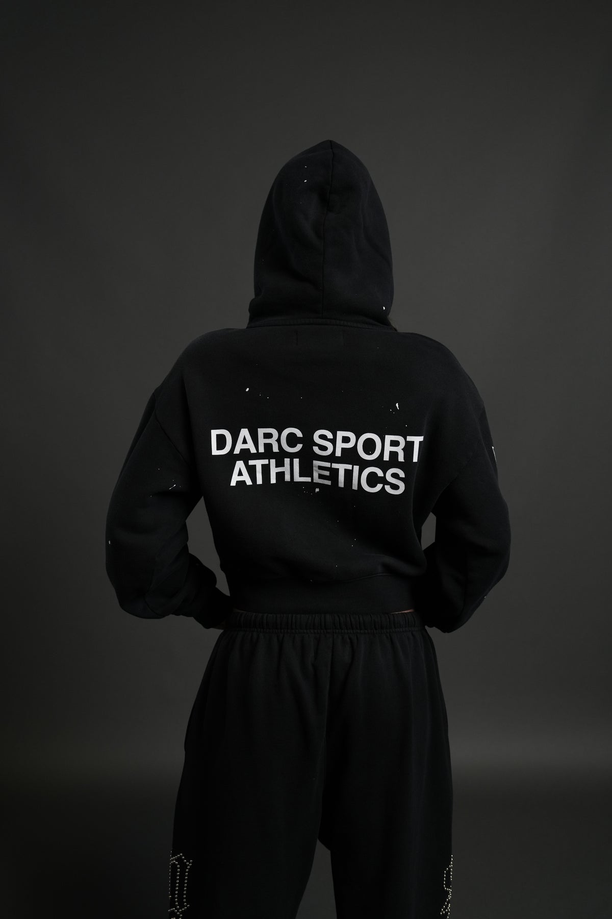 Darc Sport Athletics Owen Cropped Hoodie in Black Drift Wash