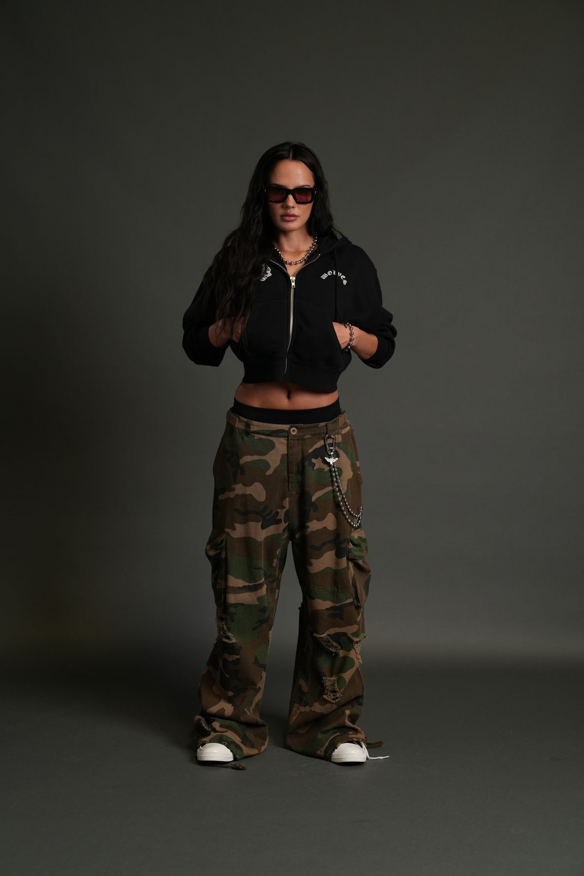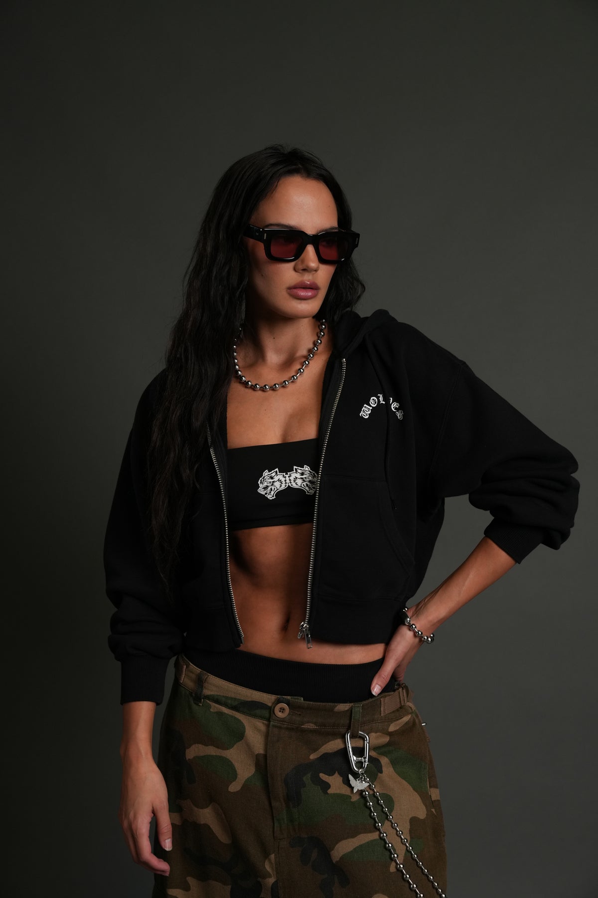 Darc Wandering "Sage" Cropped Zip Hoodie in Black