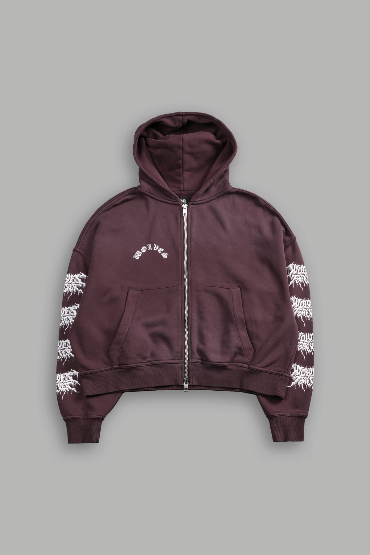 Drip Hesh Vex Double Zip Hoodie in Darc Garnet Drift Wash